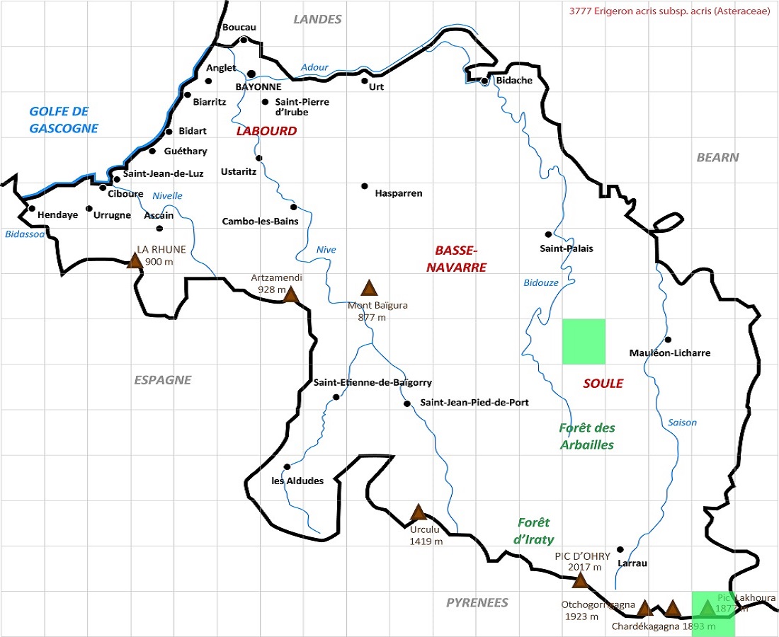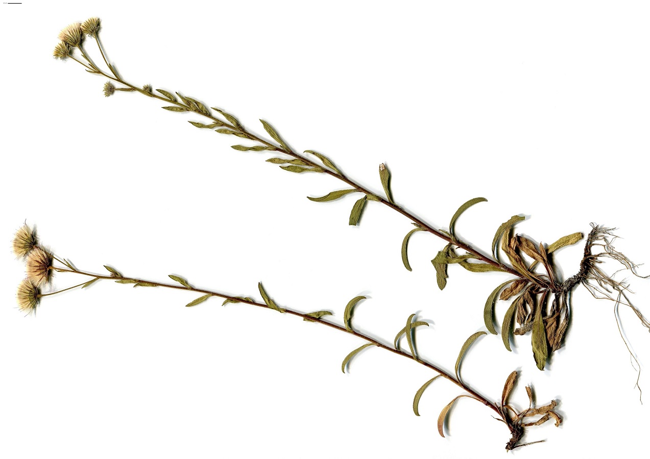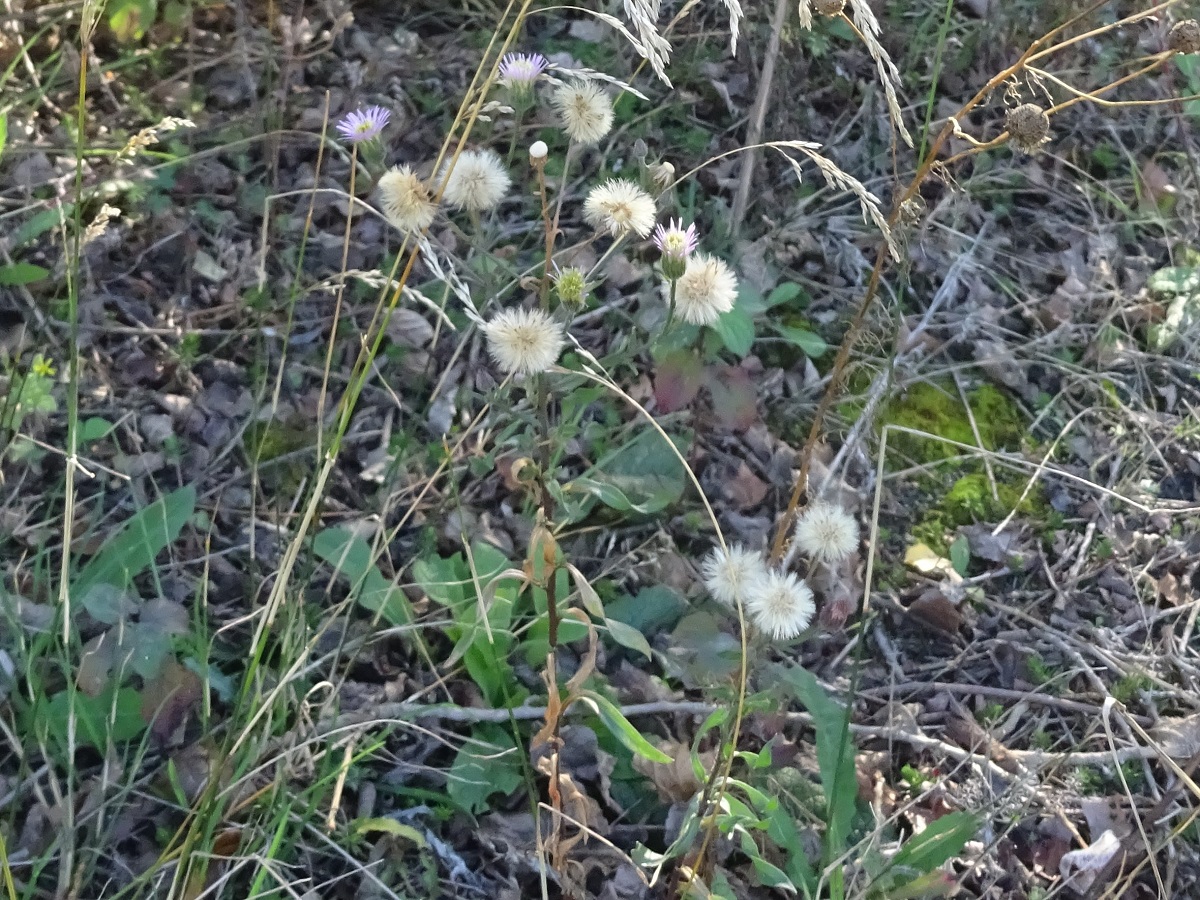 Th – 2-5 dm – Tige très velue, feuilles obovales lancéolées – Inflorescence terminale, capitules de Ø ≃ 1 cm, hémiligules lilacées fines, disque jaune, bractées velues ± pourpres