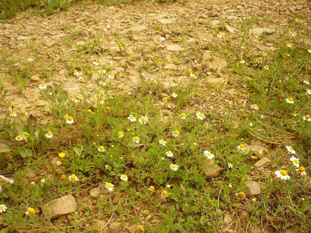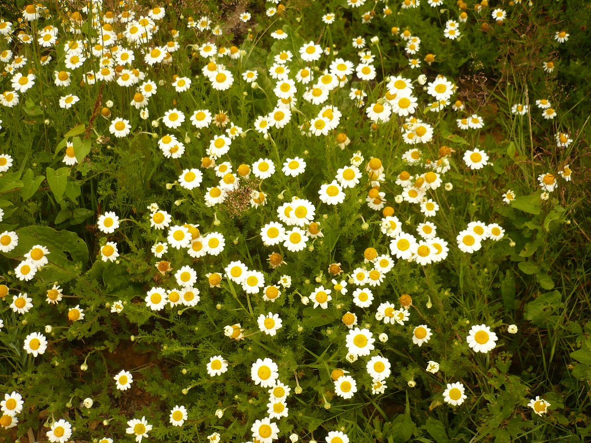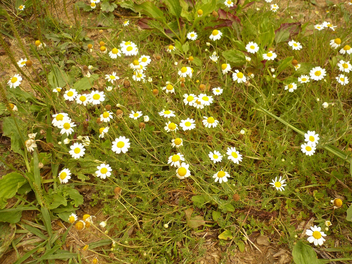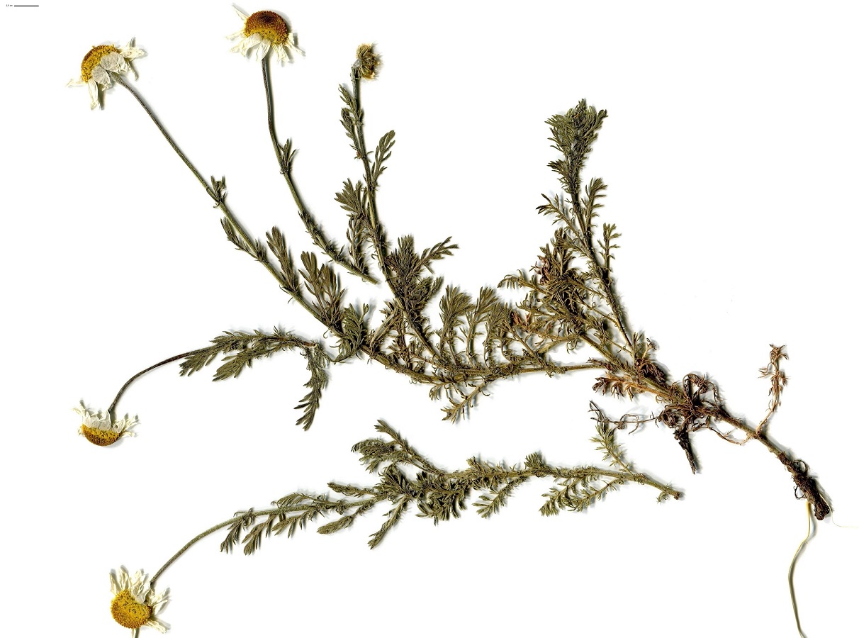 Hc – 1-3 dm – Feuilles velues 2-pennées à segments étroits, courts mucronés – Capitules très aromatiques de Ø 2-3 cm, fleurons jaunes, paillettes concaves obtuses, ½-ligules blanches
