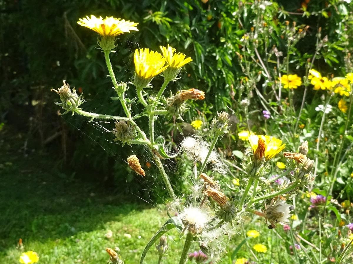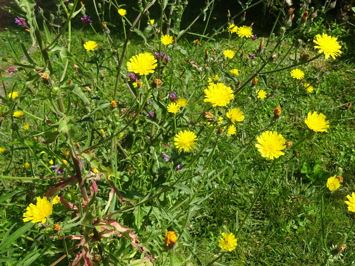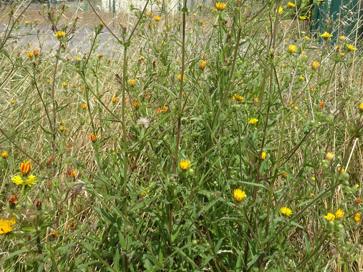 Hc(Th) – 4-8 dm – Plante rude à poils pâles à 2 crochets, feuilles lancéolées étroites ± ondulées dentées – Capitules de Ø 2-3 cm, ligules jaunes, les externes ± à bande rouge au revers