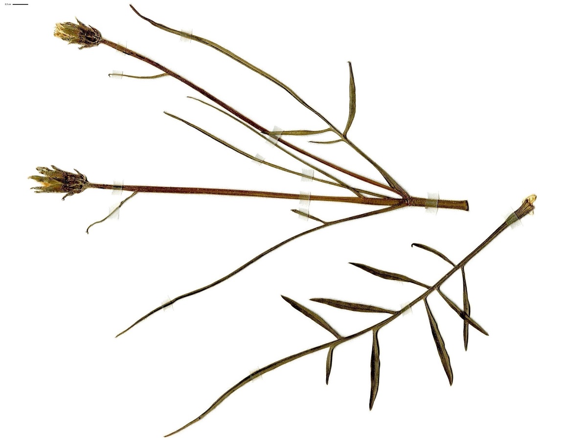 Th – 2-5 dm – Tige ascendante ramifiée, feuilles pennatiséquées en lanières linéaires – Capitule de Ø 2-2,5 cm solitaire, ligules jaune pâle, bractées laineuses les externes < aux internes