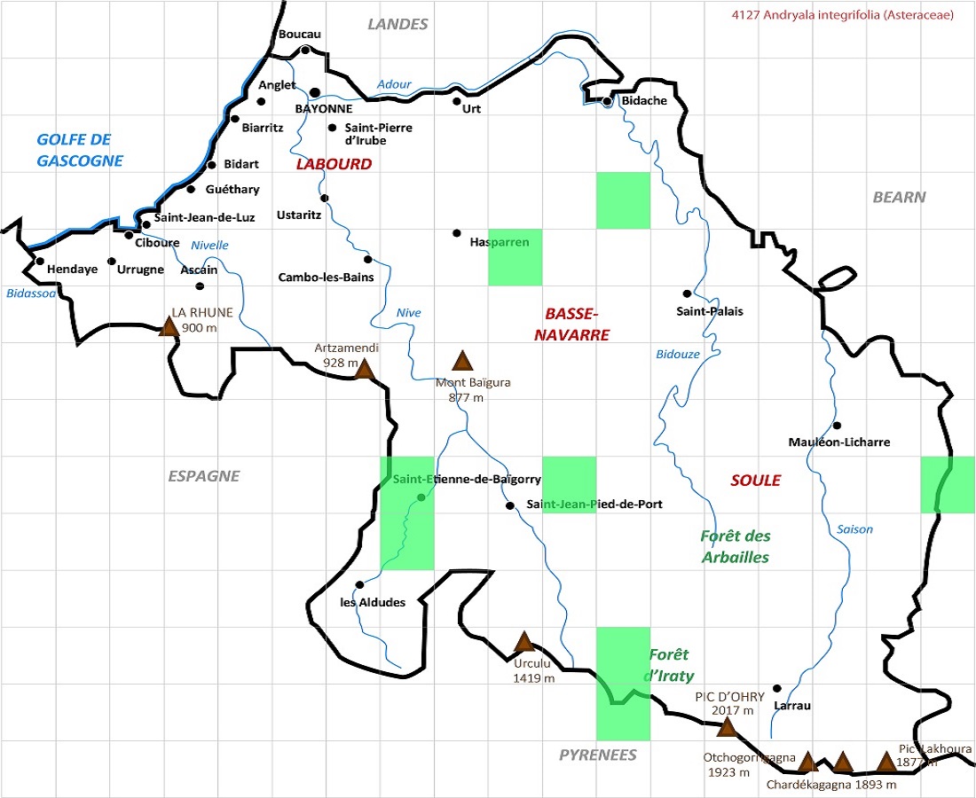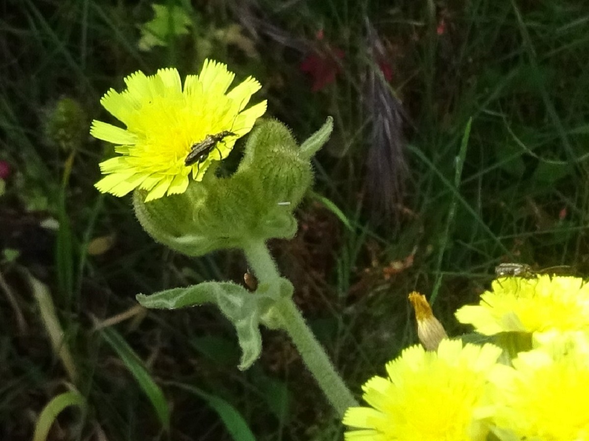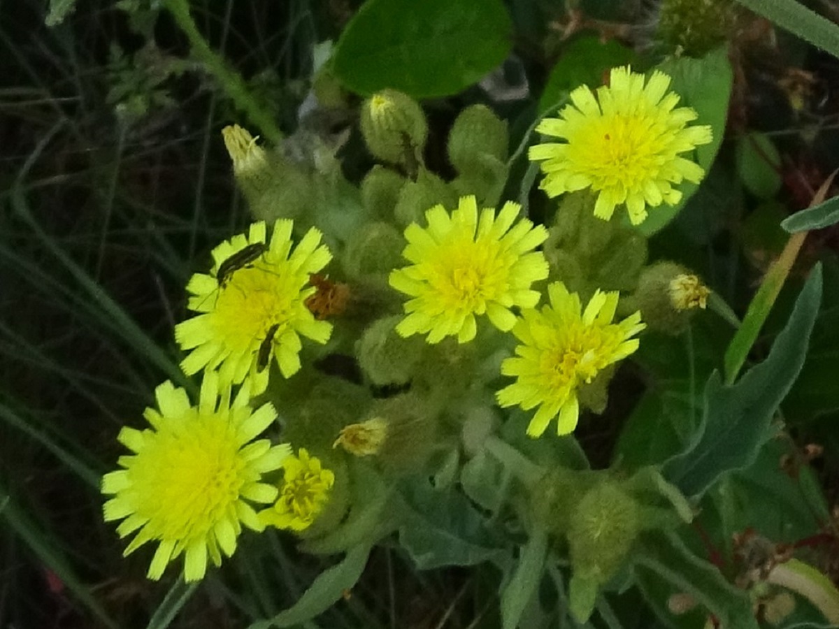 Th/Hc – 3-6 dm – Plante blanchâtre, feuilles lancéolées entières ou dentées – Capitules de Ø 12-15 mm en corymbe, ligules jaune soufre, bractées linéaires lancéolées glanduleuses