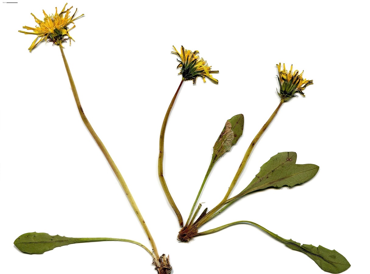 Hc/G à rhizome – 3-6 dm – Acaule, feuilles obovales étroites à lobes ou dents rétrorses – Capitule de Ø 2-4 cm, ligules jaunes, bractées externes apprimées courtes à bord cartilagineux