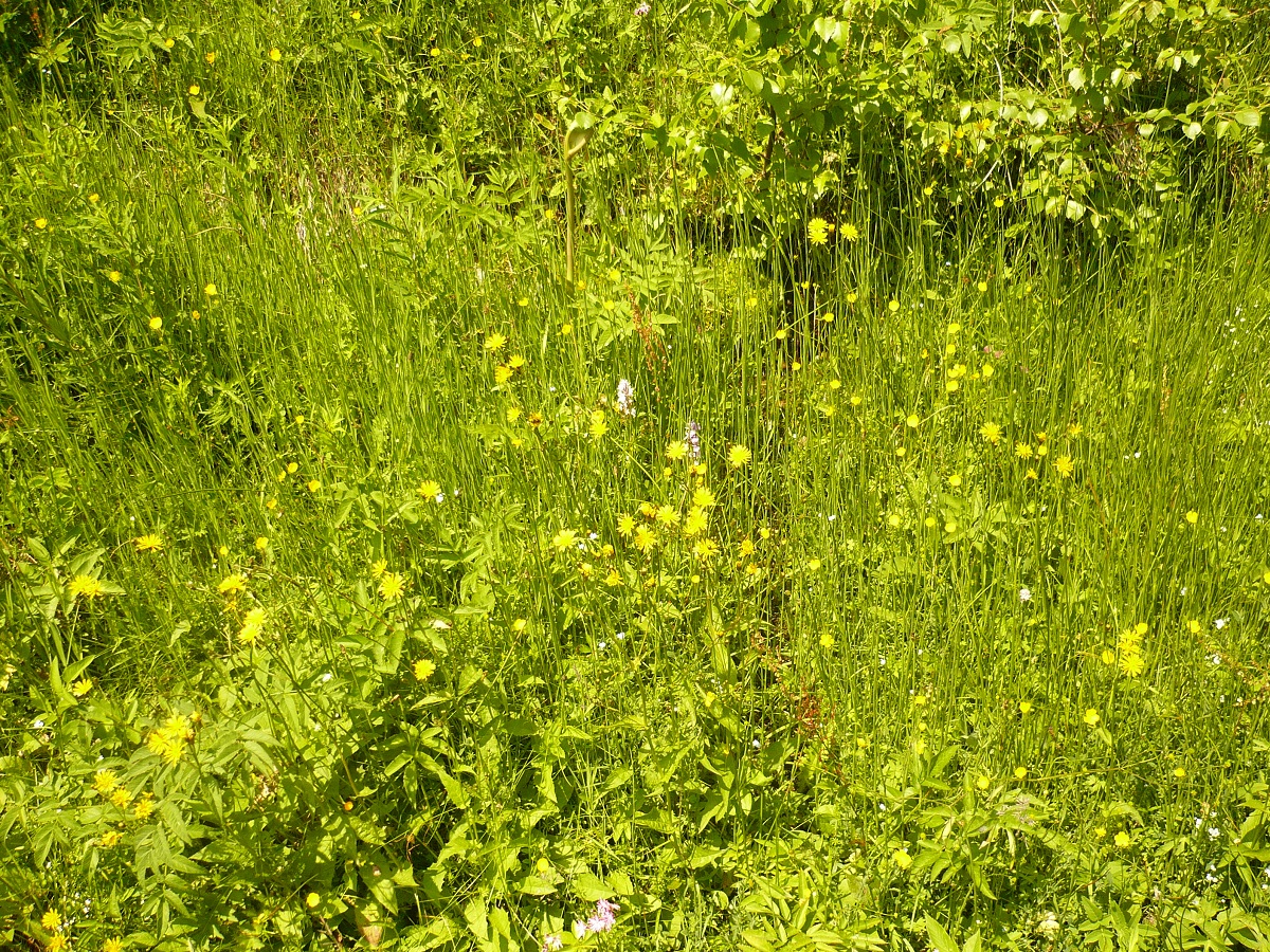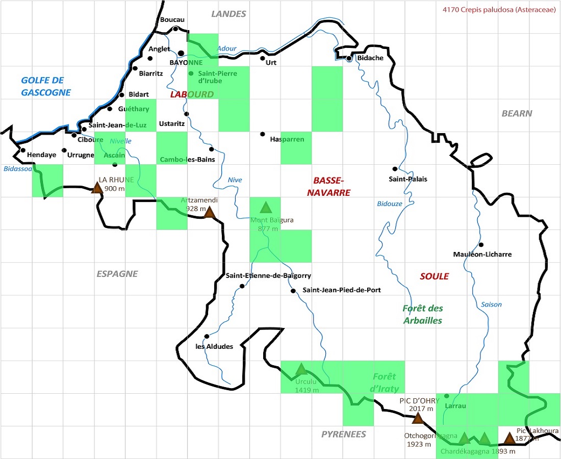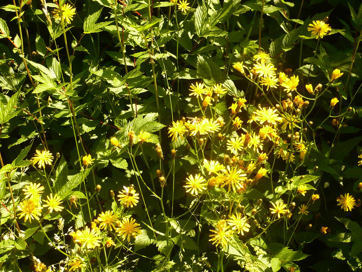 Hc – 4-8 dm – Feuilles obovales dentées, les > lancéolées auriculées – Capitules de Ø ≃ 3 cm en corymbe, ligules jaunes, stigmates vert-noirâtre, bractées à poils glanduleux