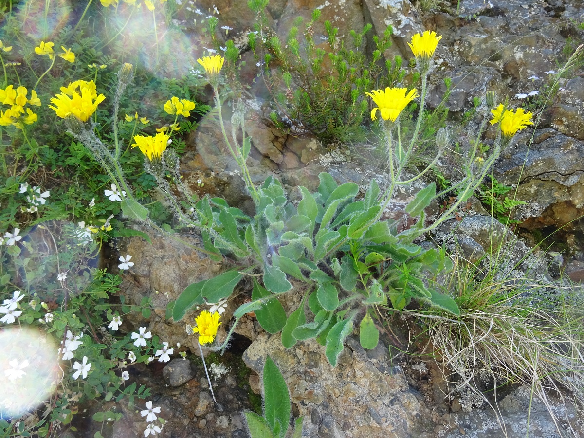 Hc – 1,5-2,5 dm – Feuilles à longs cils blancs, les < spatulées pétiolées – Capitules de Ø 3-4 cm, ligules jaunes ciliées, stigmates jaunes, involucre de Ø 1-1,5 cm velu peu glanduleux