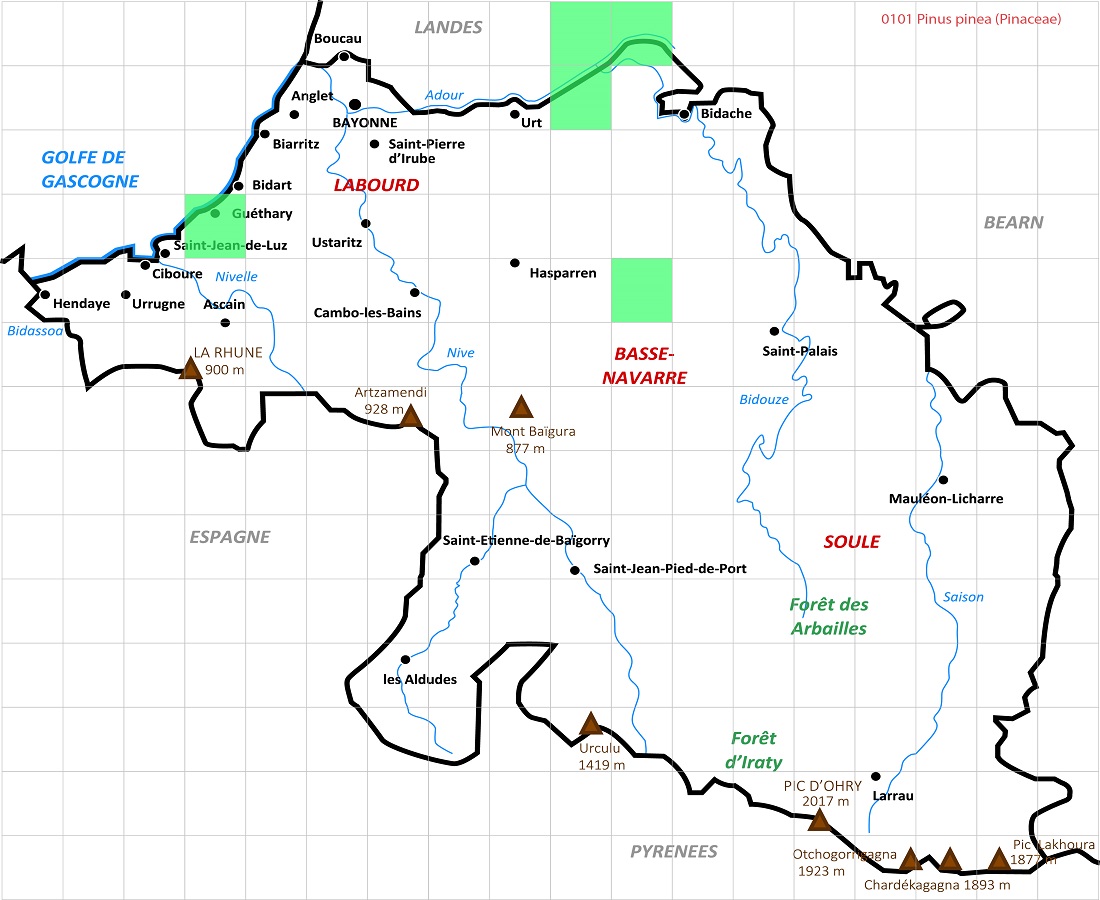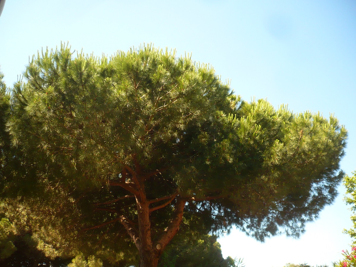 Ph – 15-25 m – Port en parasol, feuillage dense persistant à aiguilles L de 10-18 cm raides, piquantes, par 2 – Cônes gros globuleux-ovoïde, graines de L > 12 mm (pignons)