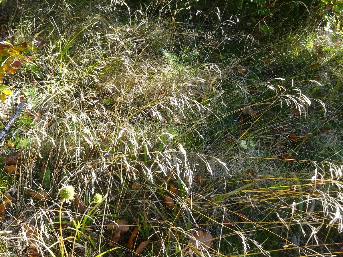 Hc – 3-6 dm – Feuilles basales fines, enroulées à 3 côtes, ligule tronquée courte – Panicule irrégulière peu fournie, épillets terminaux à reflets argentés, lemme à longue arête coudée