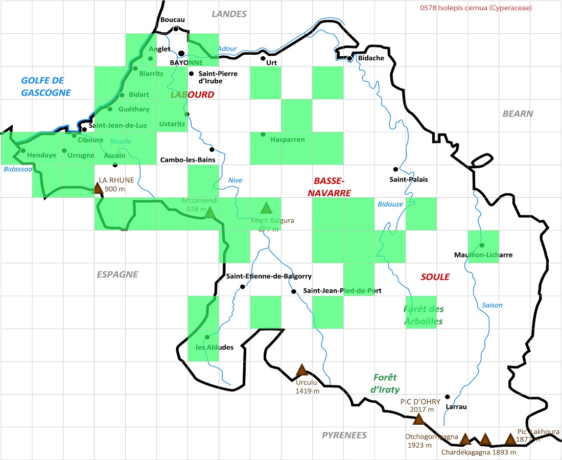 Nom Latin du taxon (Famille) Isolepis cernua (Cyperaceae) - Synonymes Latins – (Syn. Scirpus cernuus ; S. savii) Nom Français du taxon Scirpe incliné - Autres Noms Français - Souchet penché Nom en Euskara nc - Autres Noms en Euskara - nc Identifiant 0578