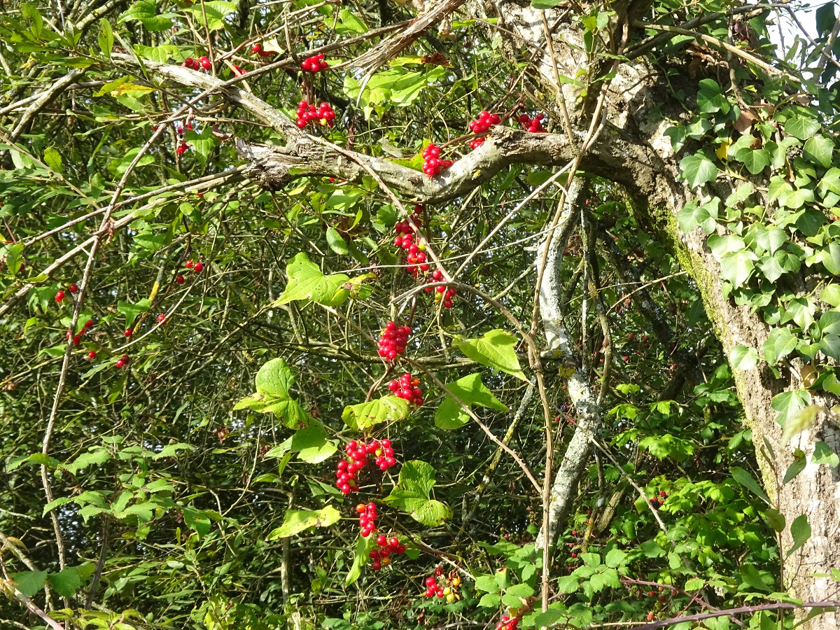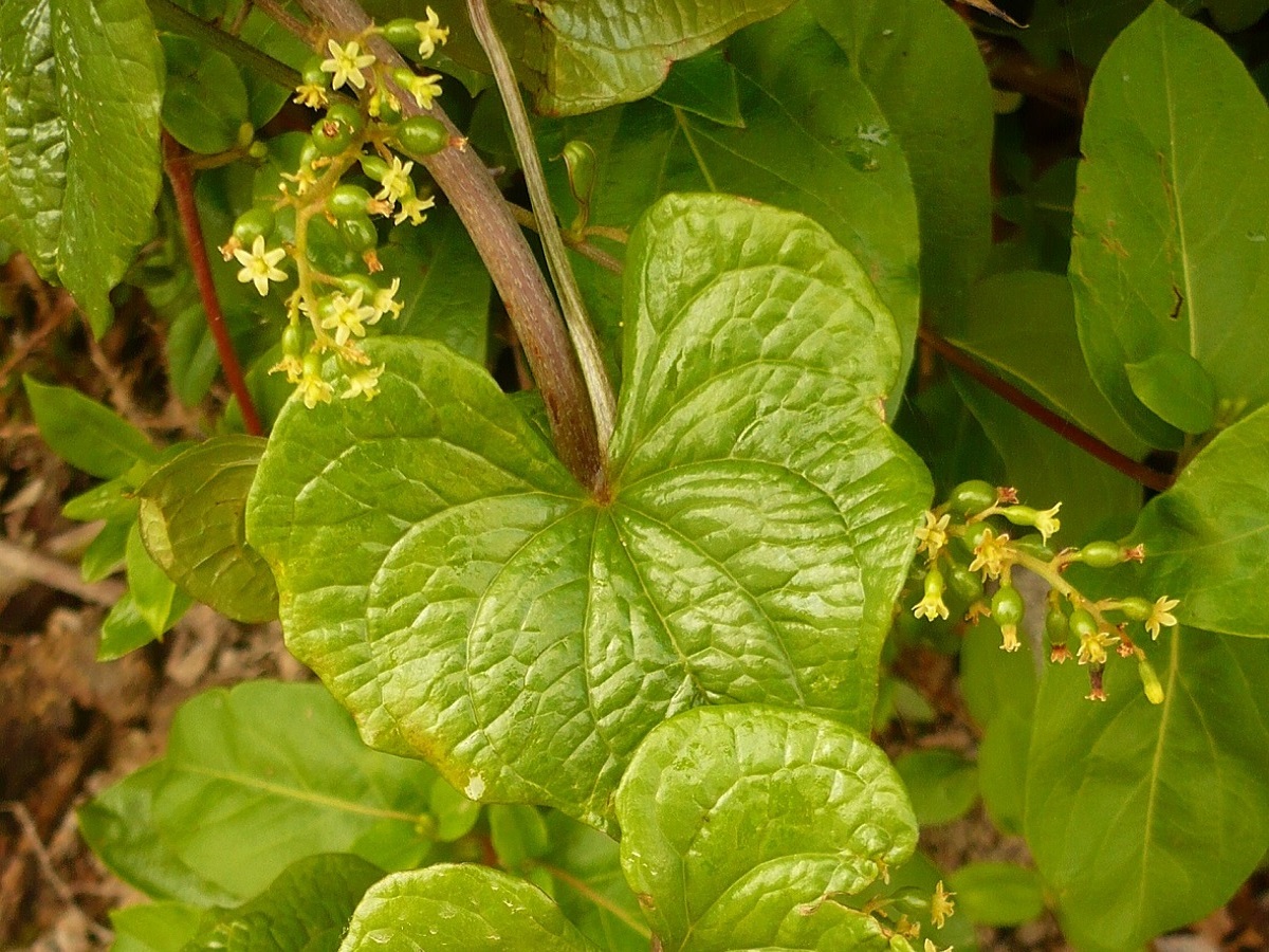 G à tubercule – 15-30 dm – Longue tige grimpante, feuilles cordiformes – Grappes axillaires de petites fleurs ♂ ou ♀, vert-jaunâtre à 6 tépales – Baies en guirlande assez grosses, écarlates