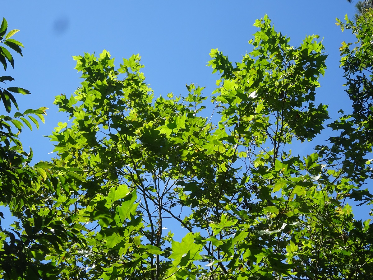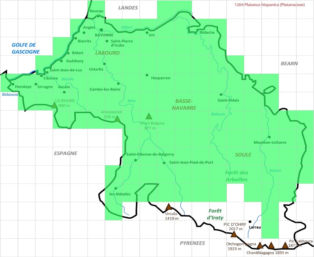 Ph – 10-30 m – Feuilles coriaces à base cordée à tronquée, à 5 lobes à peu près aussi longs que larges, dentés – Capitules ♀ en glomérules sphériques pendants, pédonculés par 2-3