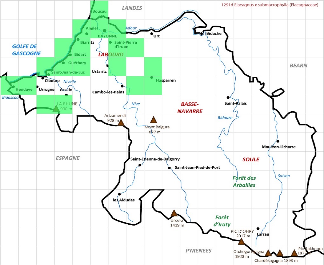 Nom Latin du taxon (Famille) Elaeagnus x submacrophylla (Elaeagnaceae) - Synonymes Latins – (Syn. Elaeagnus macrophylla x E. pungens ; E. x ebbingei) Nom Français du taxon Chalef de Ebbing - Autres Noms Français - nc Nom en Euskara nc - Autres Noms en Euskara - nc Identifiant 1291d