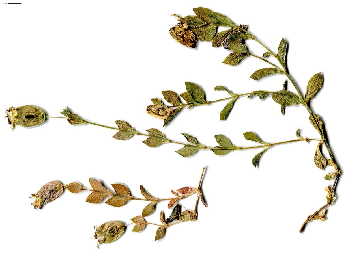 Hc – 1-2 dm – Feuilles opposées courtes ovales-aiguës, charnues, glauques – 1 Fleur à 5 petits pétales blancs bifides, calice enflé, bractéoles herbacées – Capsule à dents recourbées