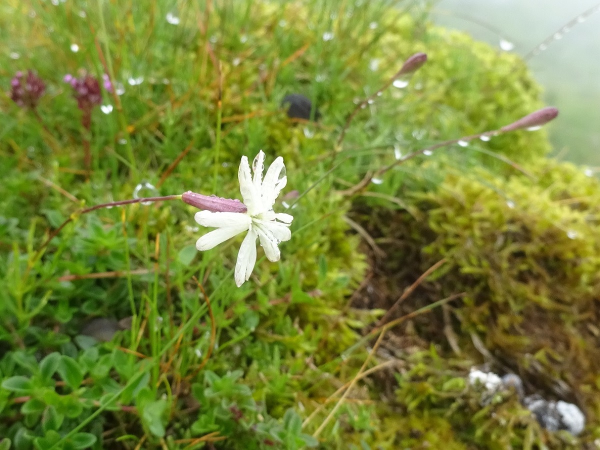Hc/Ch – 1-2 dm – Tige visqueuse, feuilles opposées linéaires-lancéolées – 1-2 Fleurs de Ø ≃ 1,5-2 cm, 5 pétales blancs bifides, rougeâtres à l’envers, calice étiré en massue – Capsule ovoïde