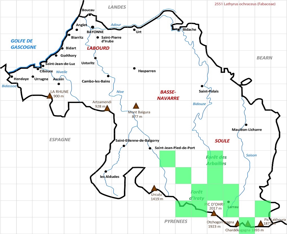 Nom Latin du taxon (Famille) Lathyrus ochraceus (Fabaceae) - Synonymes Latins – (Syn. Lathyrus laevigatus subsp. occidentalis) Nom Français du taxon Gesse de l'Ouest - Autres Noms Français - nc Nom en Euskara nc - Autres Noms en Euskara - nc Identifiant 2551