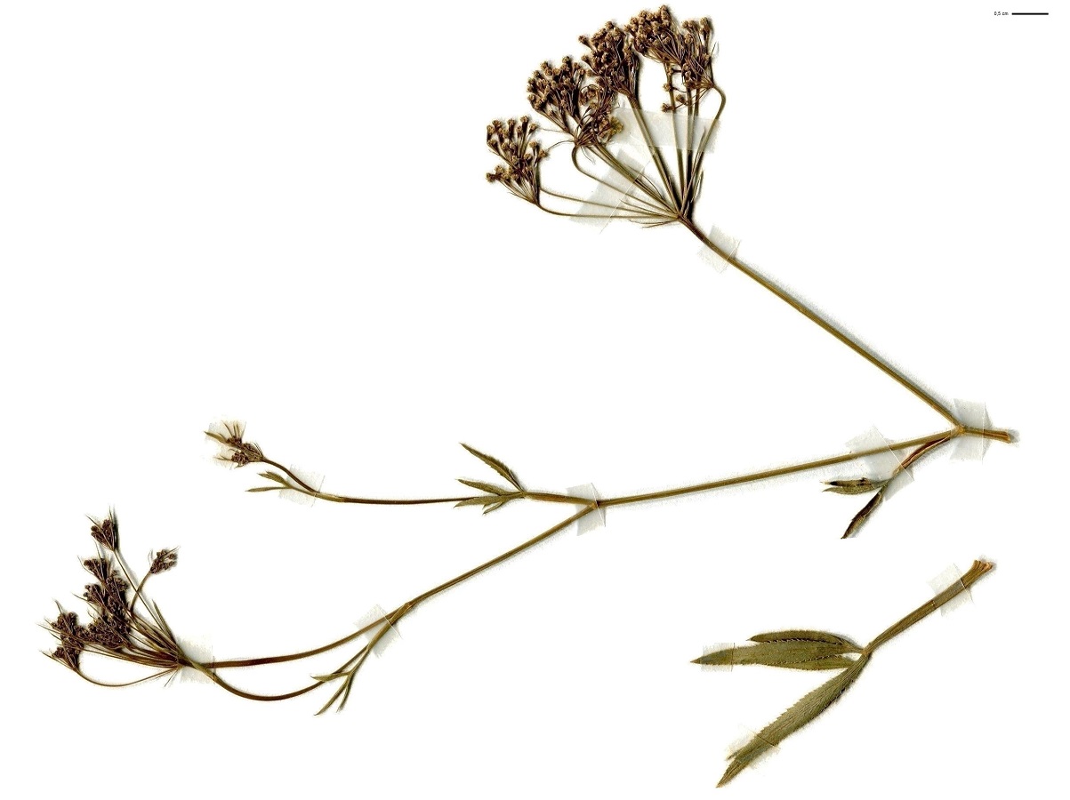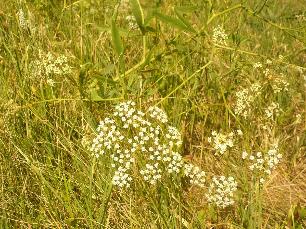 G à drageons – 3-8 dm – Feuilles glauques ternées, segments lancéolés dentés – Ombelles aérées convexes à 10-20 rayons, fleurs blanches, 4-15 bractéoles – Fruit L de 3-4 mm