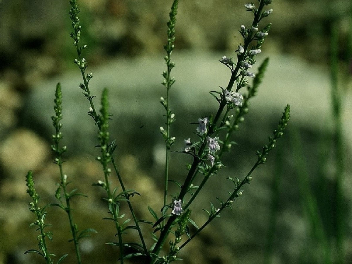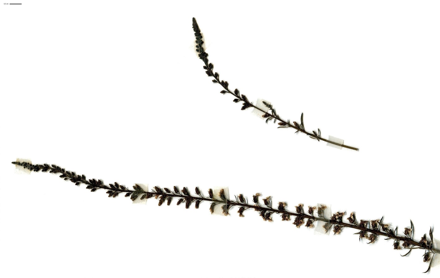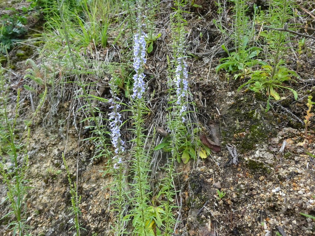 Hc – 2-8 dm – Feuilles < en rosette obovales spatulées dentées – Grappe fine étirée, corolle L de 4-5 mm bleu clair en tube évasé à 5 lobes, éperon recourbé en avant – Capsule sphérique