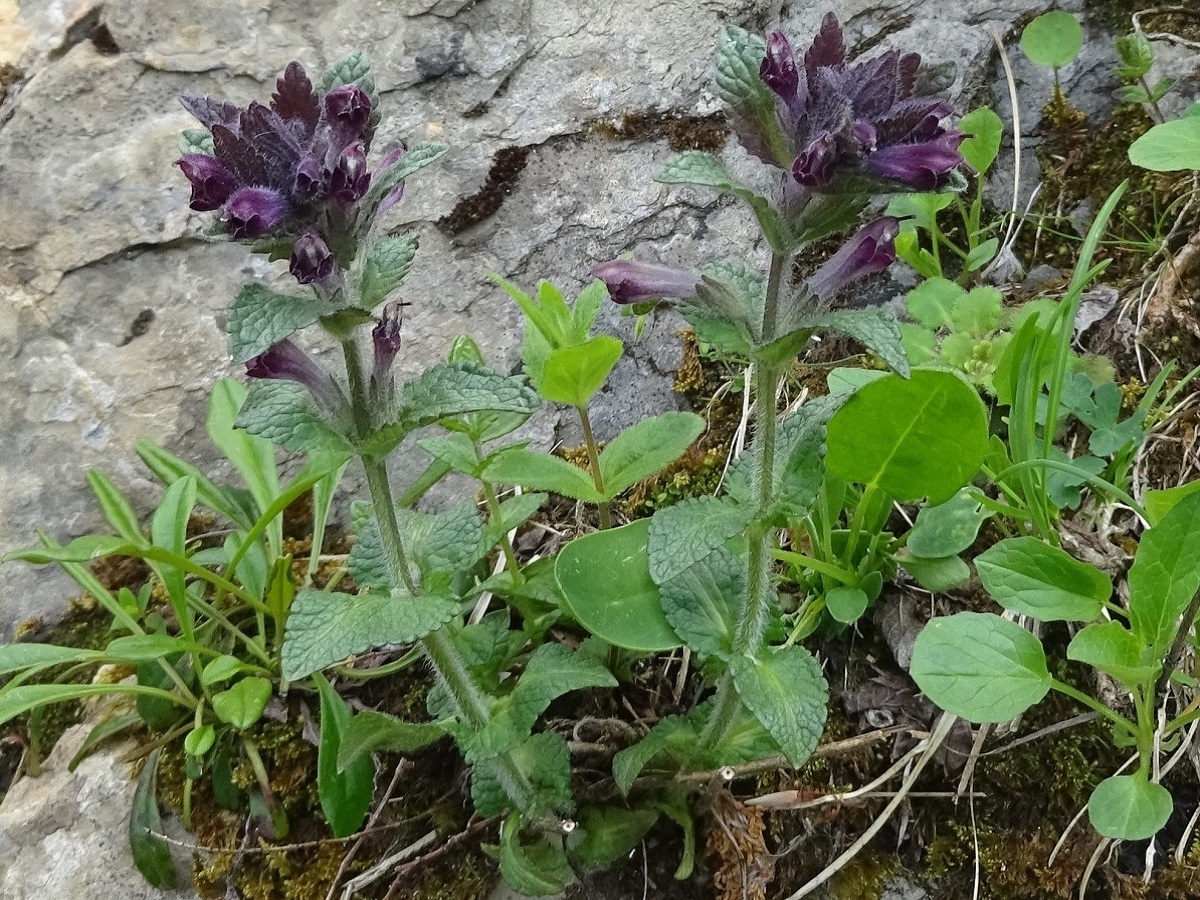 Hc SPar – 1-3 dm – Tige à poils flexueux, feuilles de L ≃ 2 cm opposées, ovales aiguës crénelées, sessiles – Fleurs 3-12 en tête serrée, corolle L de 1,5-2 cm pourpre, bractées violet foncé