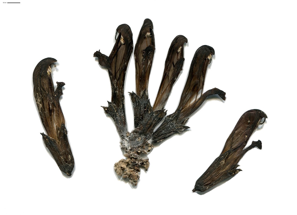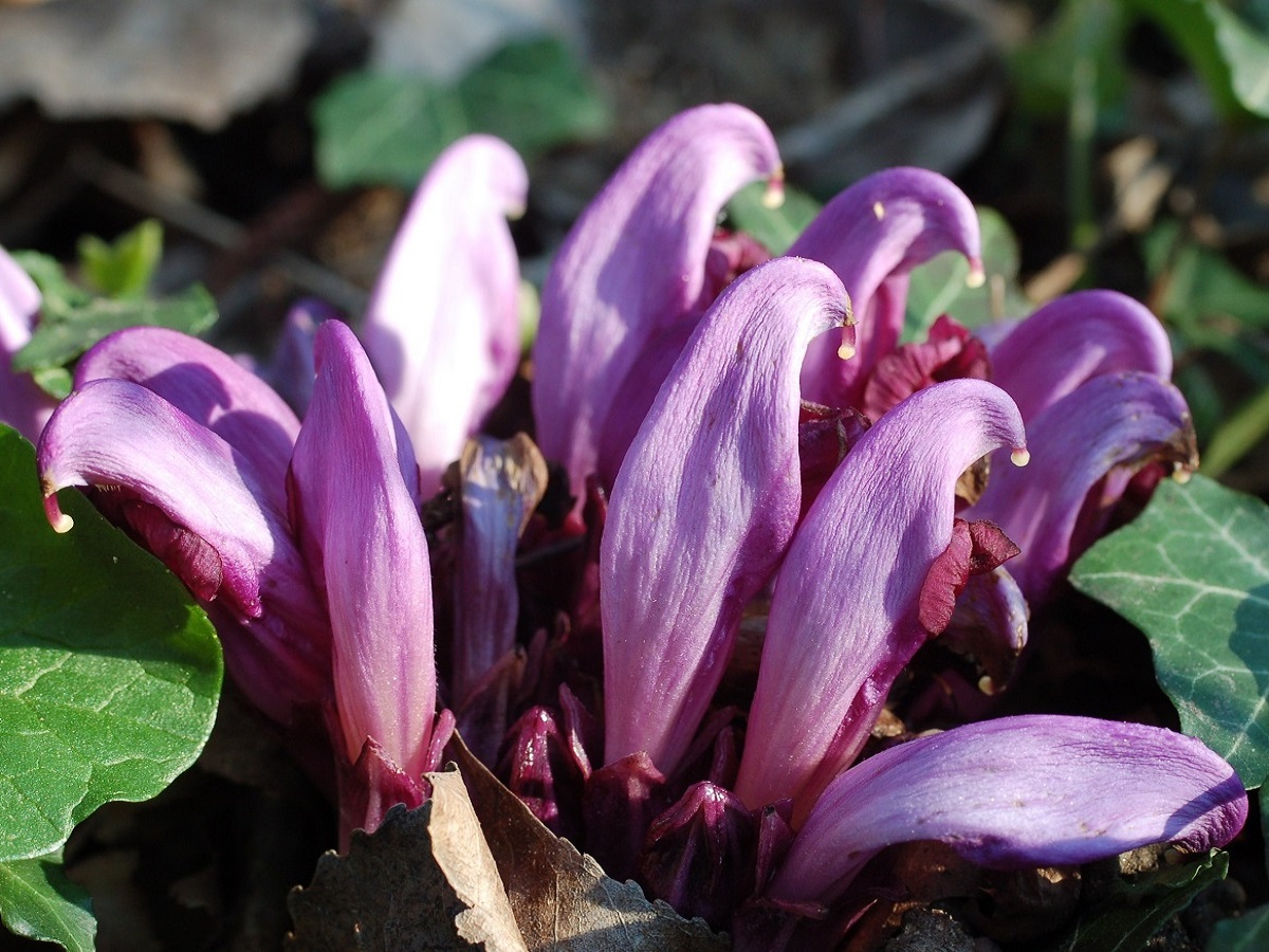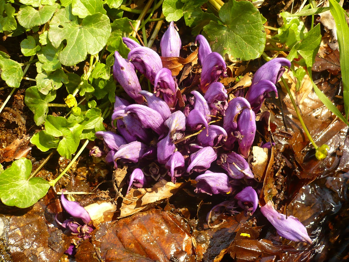G à rhizome Par – 0,5-1 dm – Feuilles charnues en écailles blanc jaunâtre – Fleurs dressées, corolle L de 4-5 cm violette, lèvre > arquée cucullée, calice de L ≃ 2 cm lilas pâle – Capsule ovoïde