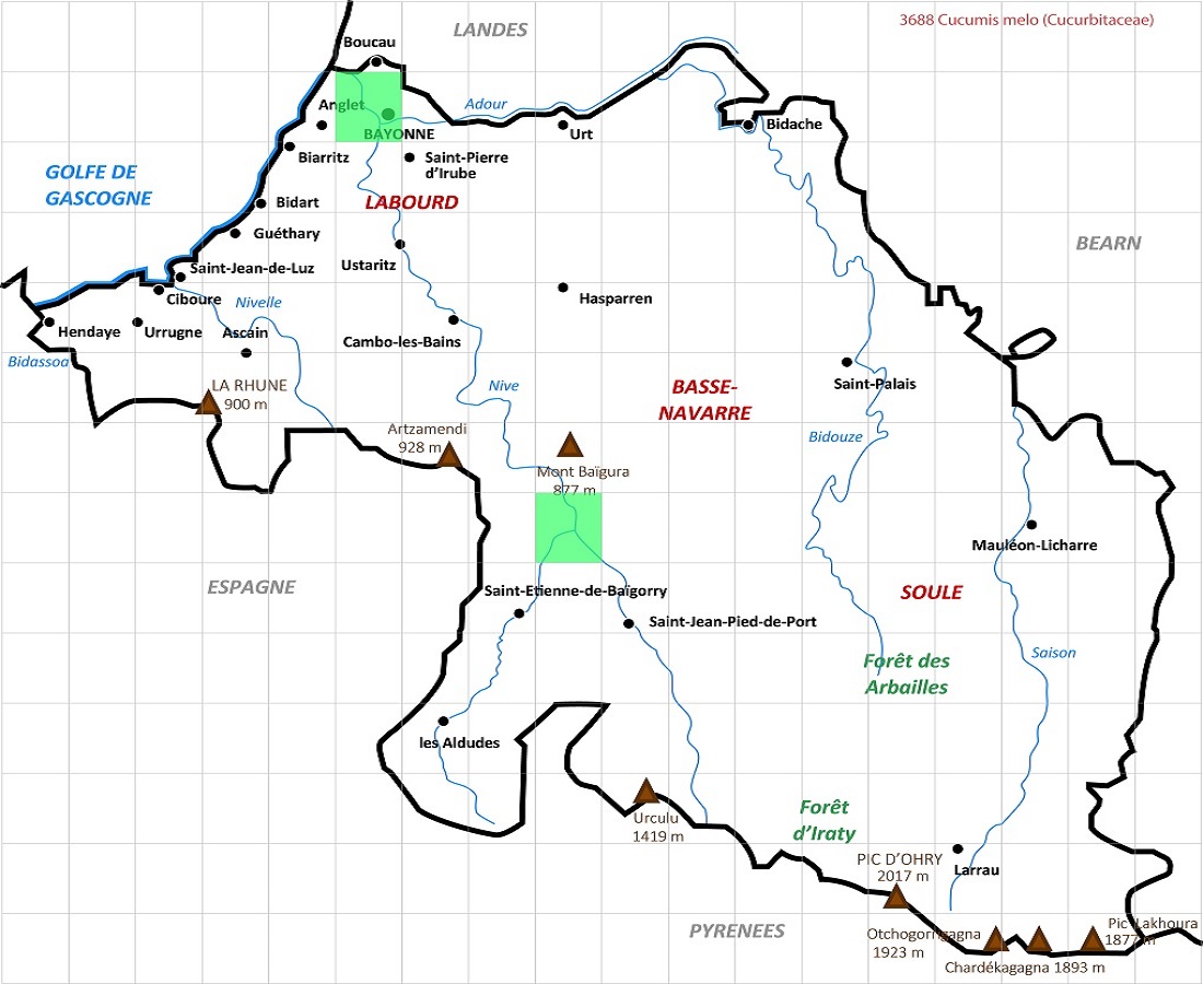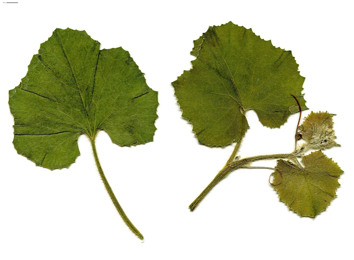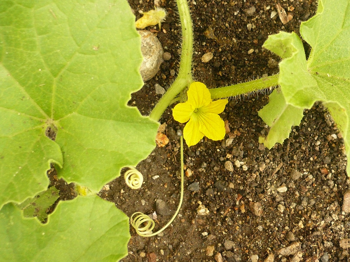Th – 0,5-2 m – Feuilles cordées de 8-15 cm à 5 lobes arrondis crénelés dentés avec vrilles simples – Fleur de Ø 2-3 cm jaune à 5 lobes ovales, lobes du calice subulés – Fruit sphérique (melon)
