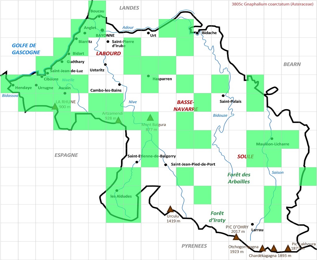 Nom Latin du taxon (Famille) Gnaphalium coarctatum (Asteraceae) - Synonymes Latins – (Syn. Gamochaeta coarctata ; G. purpurea auct. ; G. americana ; G. spicata) Nom Français du taxon Cotonnière pourpre - Autres Noms Français - nc Nom en Euskara nc - Autres Noms en Euskara - nc Identifiant 3805c