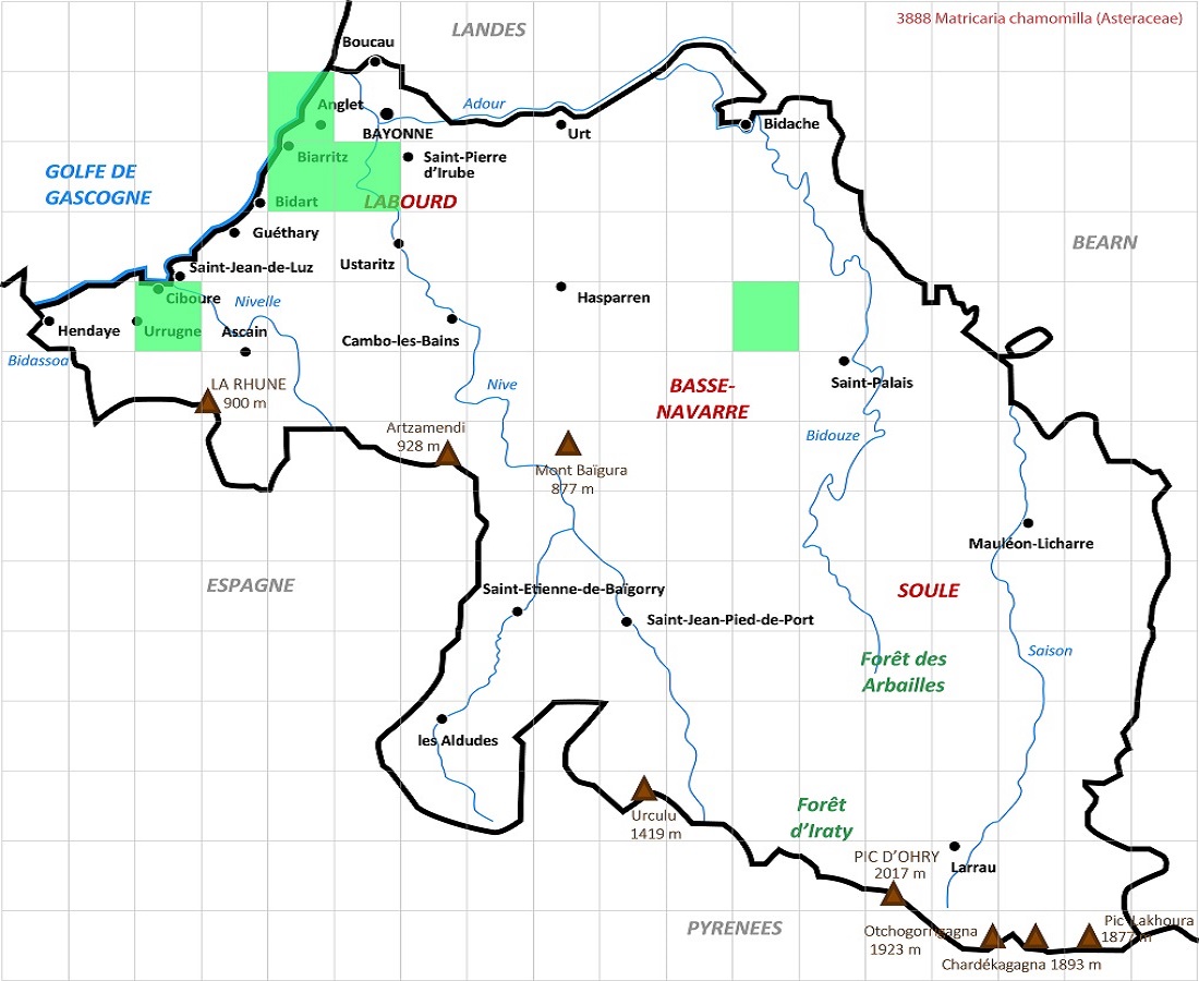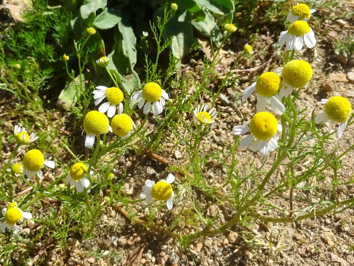 Th – 2-4 dm – Feuilles finement divisées – Capitules très aromatiques de Ø 2-2,5 cm, fleurons à 5 lobes jaunes sans paillettes, hémiligules blanches ± réfléchies, réceptacle vite convexe