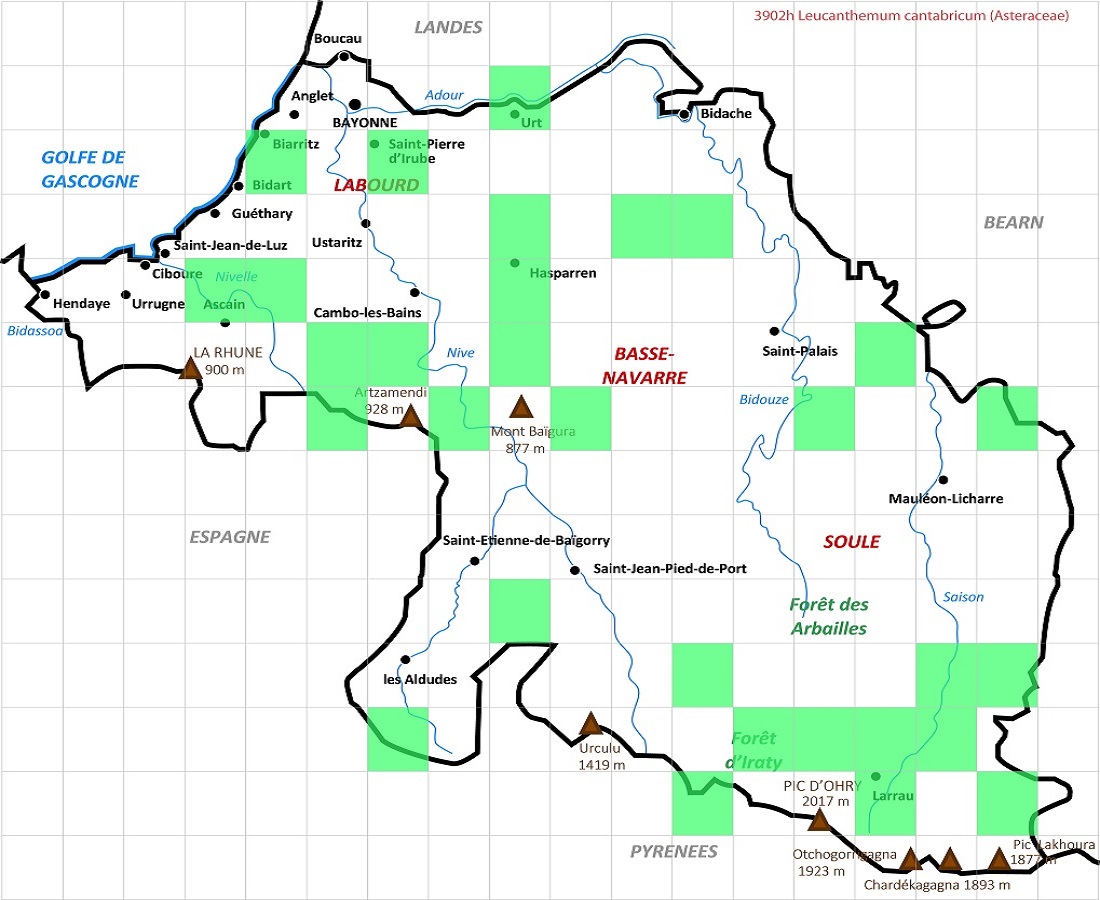 Nom Latin du taxon (Famille) Leucanthemum cantabricum (Asteraceae) - Synonymes Latins – (Syn. Leucanthemum ircutianum subsp. cantabricum) Nom Français du taxon Marguerite des Cantabriques - Autres Noms Français - nc Nom en Euskara nc - Autres Noms en Euskara - nc Identifiant 3902h