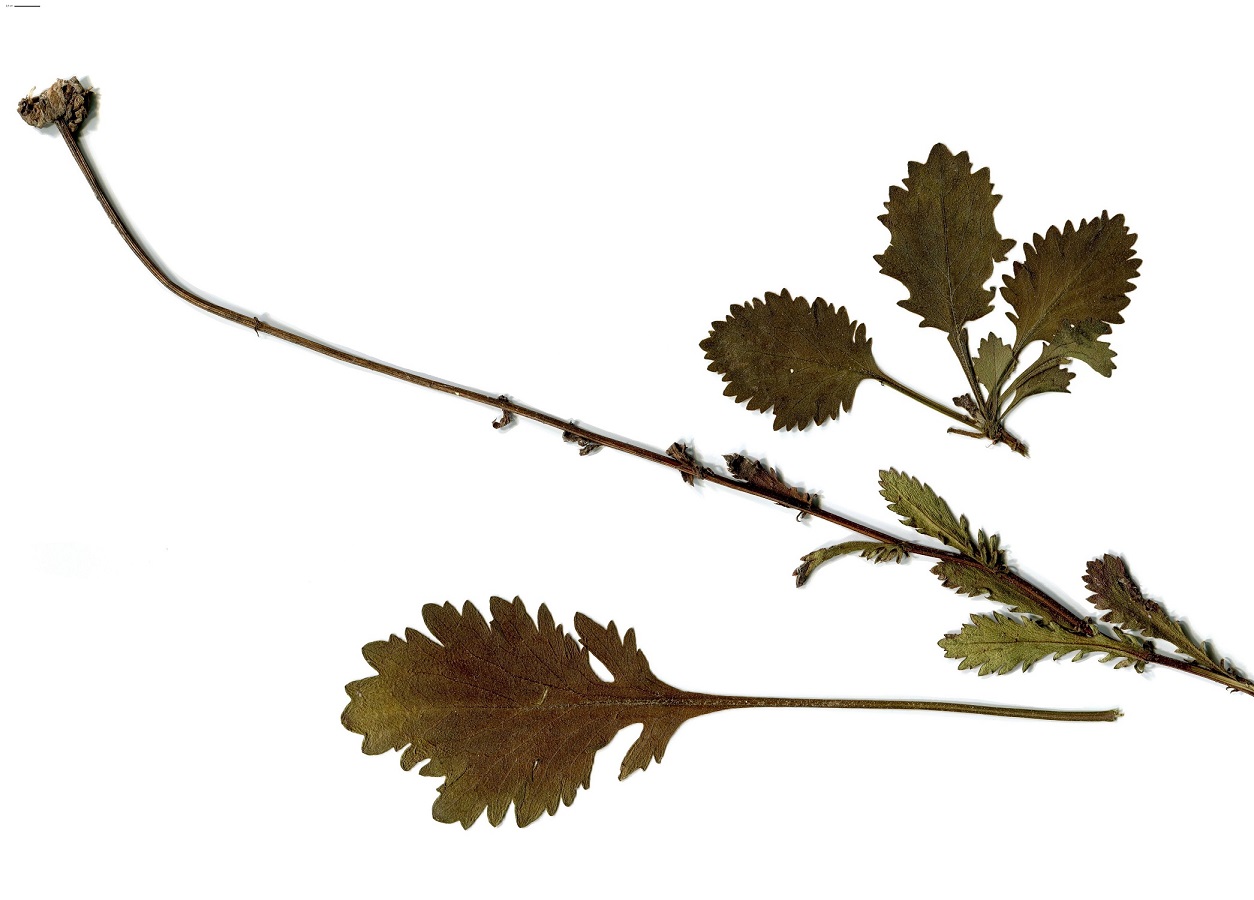 Hc – 2-3 dm – Rameuse, feuilles ± lobées, les < larges spatulées, les > obovales étroites, à lobes obtus – Capitules de Ø 3-4 cm, disque jaune, ½-ligules blanches, bractées à marge foncée