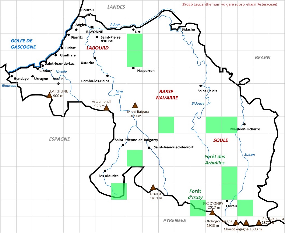 Nom Latin du taxon (Famille) Leucanthemum vulgare subsp. eliasii (Asteraceae) - Synonymes Latins – (Syn. Leucanthemum vulgare**) Nom Français du taxon Marguerite d’Élias - Autres Noms Français - nc Nom en Euskara nc - Autres Noms en Euskara - nc Identifiant 3902b