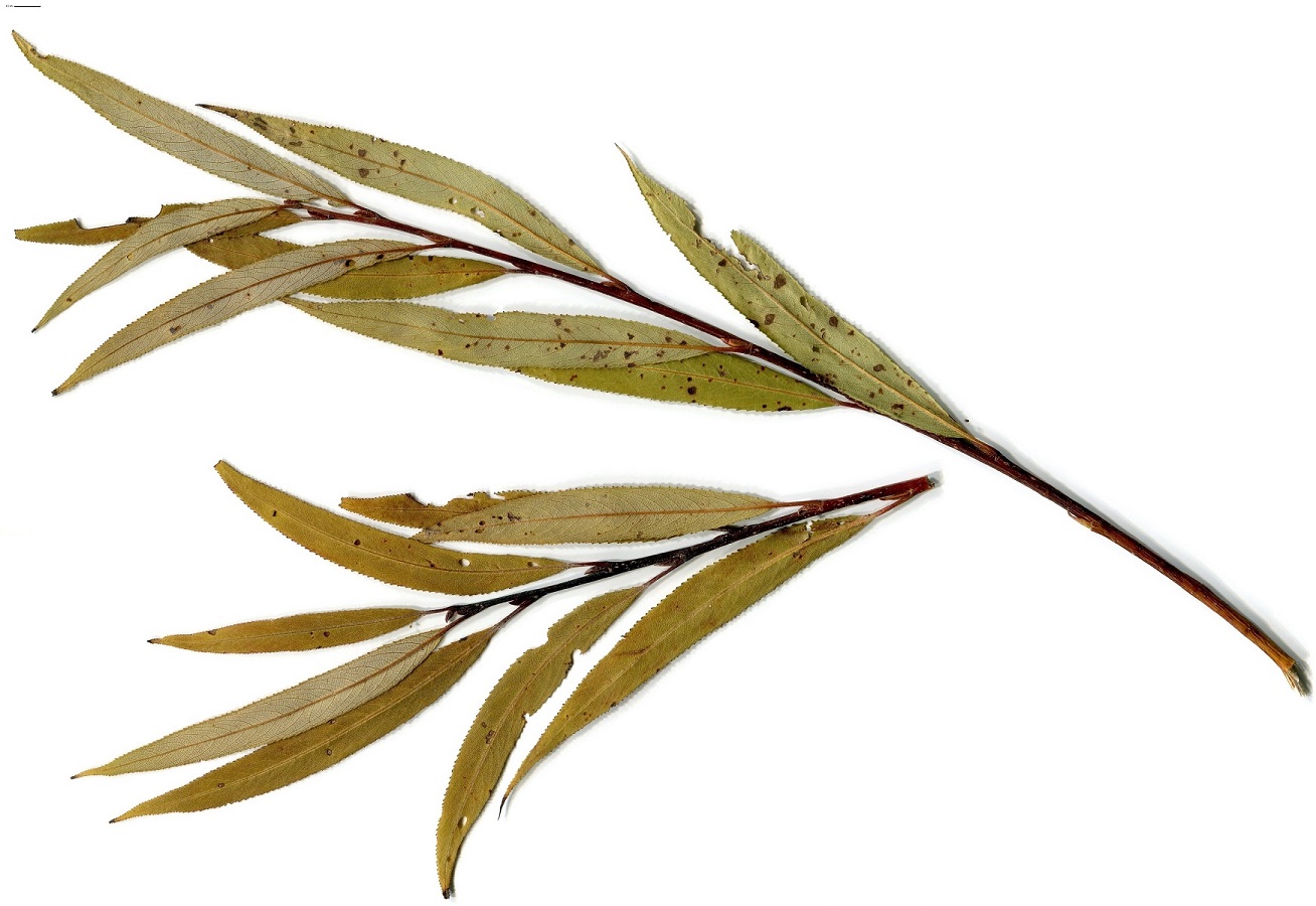 Ph – 5-20 m – Rameaux jaune vif à orangé, feuilles lancéolées, finement dentées, vert clair dessus, faiblement pubescentes à la face inférieure – Dioïque, chatons longs