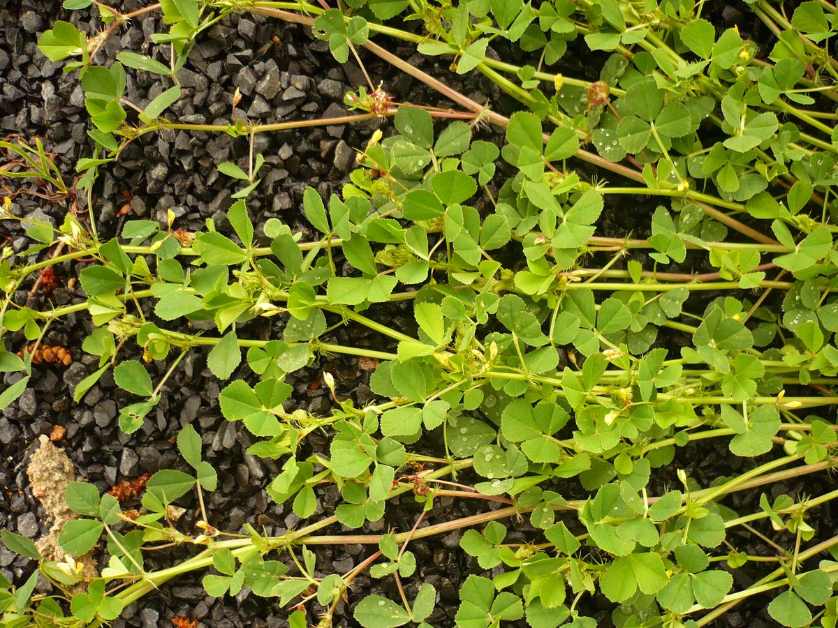 Th – 2-5 dm – Feuilles à 3 folioles obovales dentées à l’apex, stipules laciniées – Grappes axillaires de 1-5 fleurs à corolle jaune L de 2-5 mm – Gousse en tire-bouchon → disque de Ø ≃ 15 mm