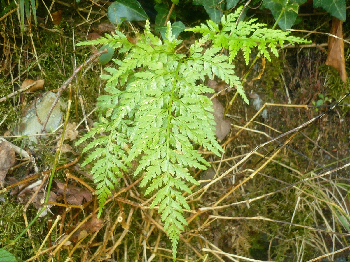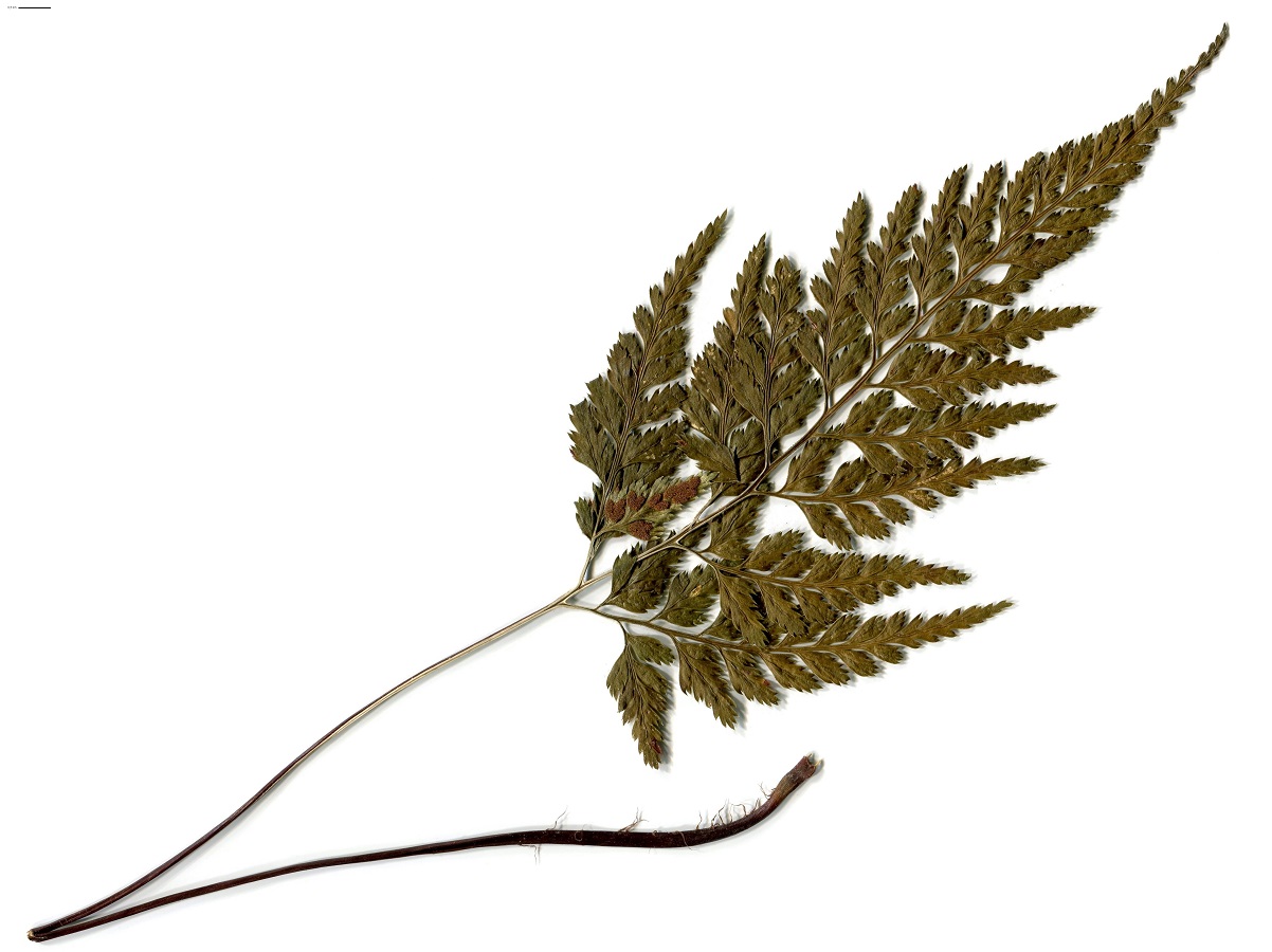 Hc – 2-4 dm – Limbe très finement divisé à contour triangulaire, pennes falciformes effilées, pinnules dentées à net mucron blanchâtre, pétiole long – Sores bruns linéaires