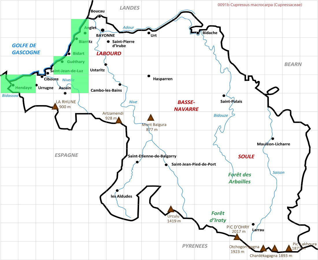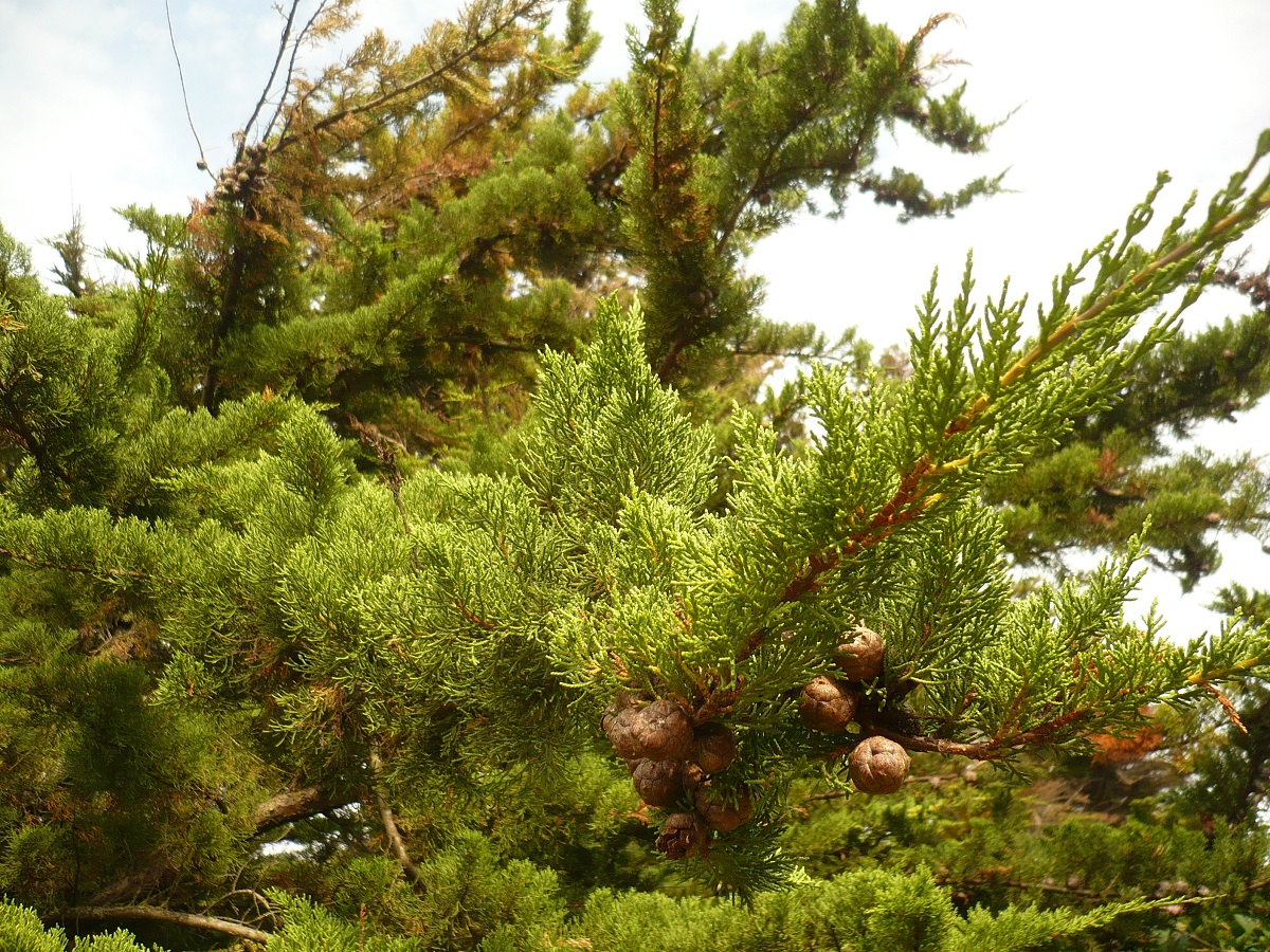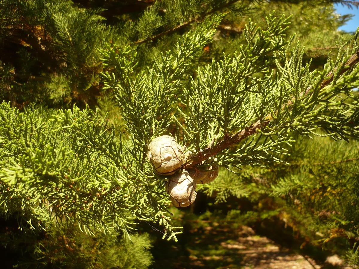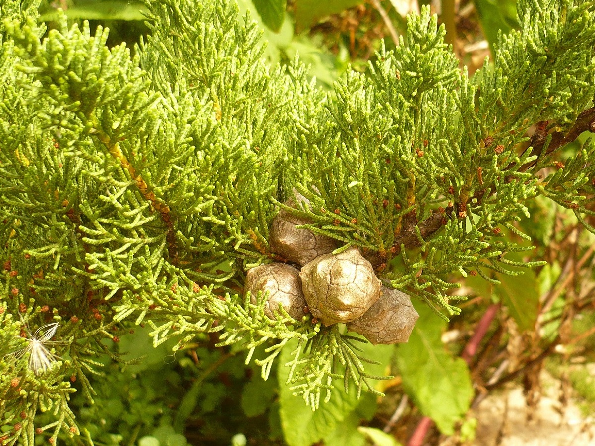 Ph – 3-20 m – Port pyramidal à étalé, rameaux cylindriques à petites feuiiles L de 1-2 mm imbriquées vert jaune, aromatiques, persistantes – Cônes ♀ globuleux à 6-12 écailles
