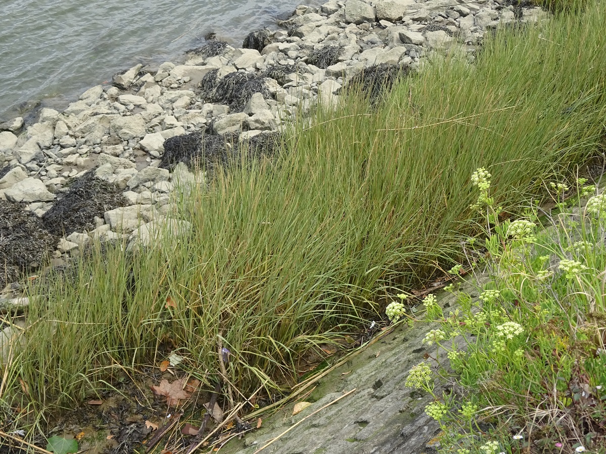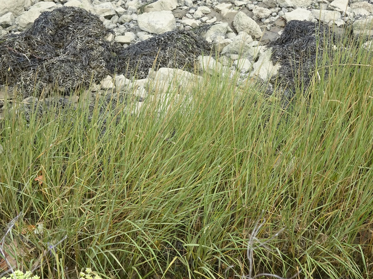 G à rhizome – 4-8 dm – Feuilles très longues et étroites – Inflorescence à (3) 5-13 rameaux fins, serrés contre l’axe de la tige, épillets espacés, glume > à peu près glabre de L > 8 mm