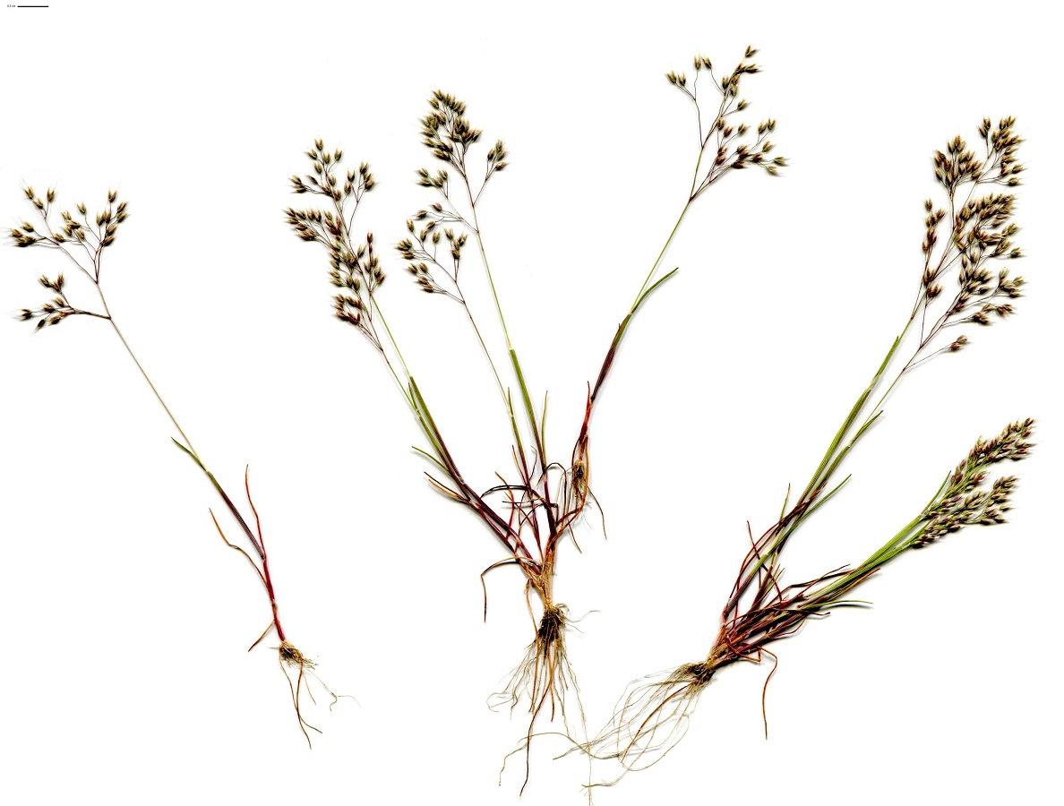 Th – 1-3 dm– Tiges grêles, simples ou en faisceau, feuilles fines courtes – Panicule lâche étalée, argentée, épillets de L ≃ 3 mm à fin pédicelle, glumes aiguës, lemmes aristées