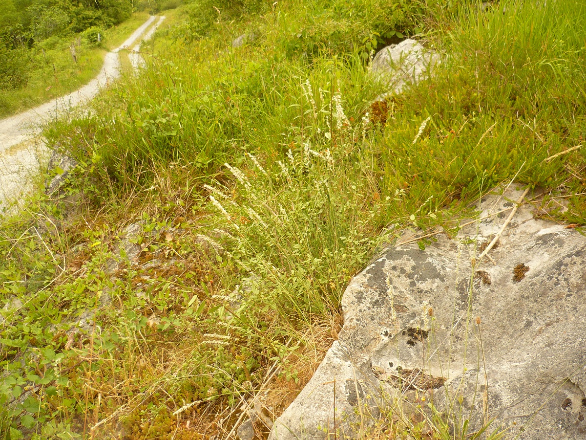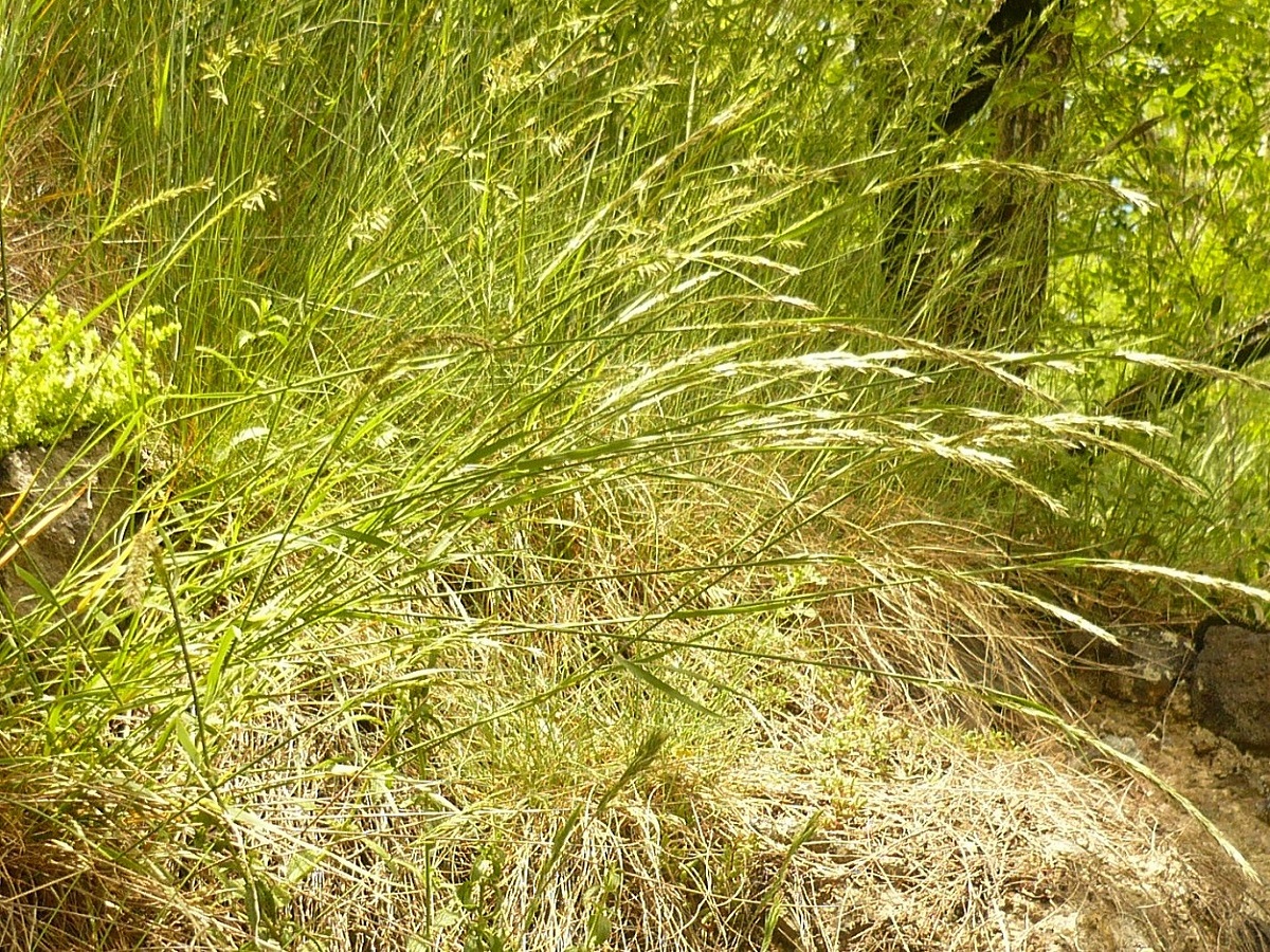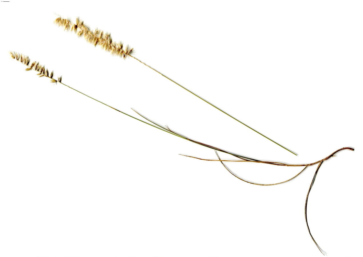 Hc – 4-8 dm – Feuilles raides, glabres – Panicule (L < 10 cm) en épi assez lâche, unilatéral, velu-soyeux, épillets (L = 5-7 mm) argentés, glumes à peu près égales, l’< à poils courts denses