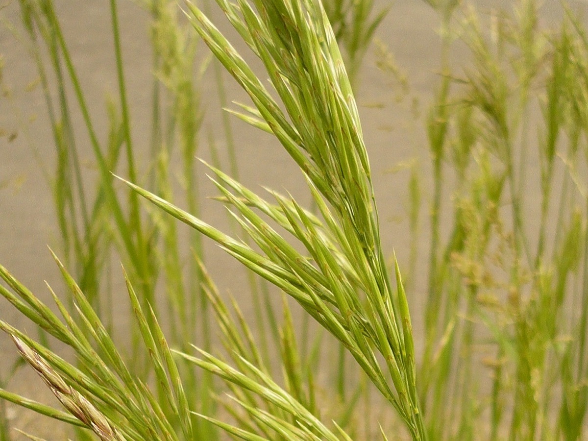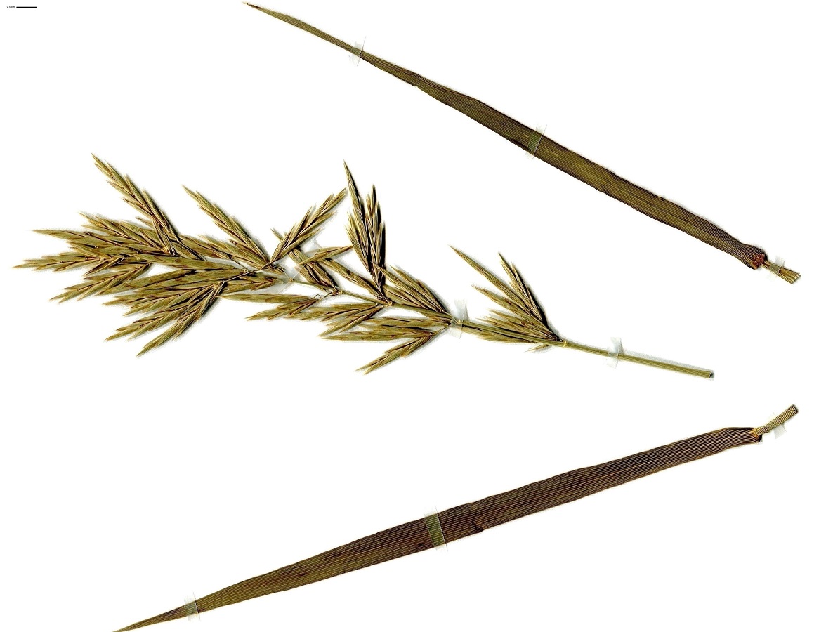 Hc – 6-12 dm – Feuilles planes larges, glabres, scabres, ligule denticulée courte – Panicule compacte, épillets L de 1-4 cm oblongs aplatis, lemme carénée mutique ou mucronée