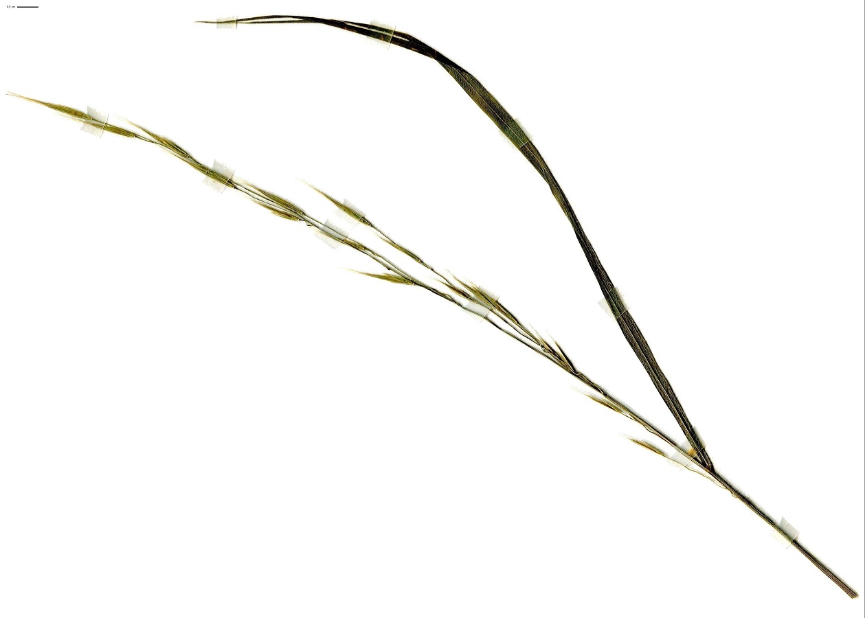 Hc – 8-20 m – Feuilles, larges planes molles, et gaines velues (poils de L ≥ 3 mm), ligule crénelée – Grande panicule lâche étalée, pendante, épillets L de 2-4 cm, arête L de 4-8 mm