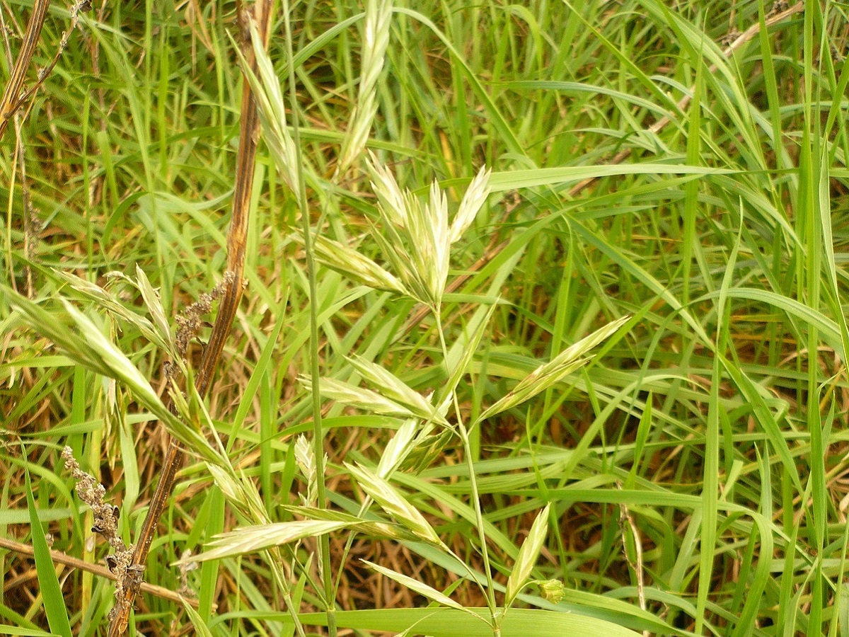 Hc(Th) – 6-12 dm – Feuilles larges scabres, ligule dentée – Panicule ± lâche et arquée, épillets L de 2-3 cm larges très aplatis, lemme carénée scabre, paléole courte, arête à peu près nulle