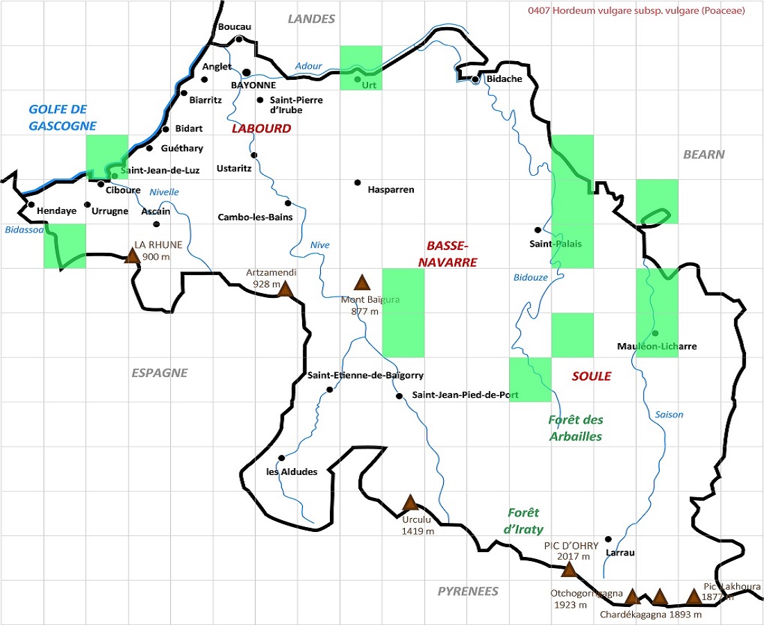 Th – 5-10 dm – Robuste – Épi de L ≃ 10 cm, vite penché, à rachis épais, compact, épillets fertiles sur 4-6 rangs, les latéraux à forte arête très longue → 18 cm, un peu divergente