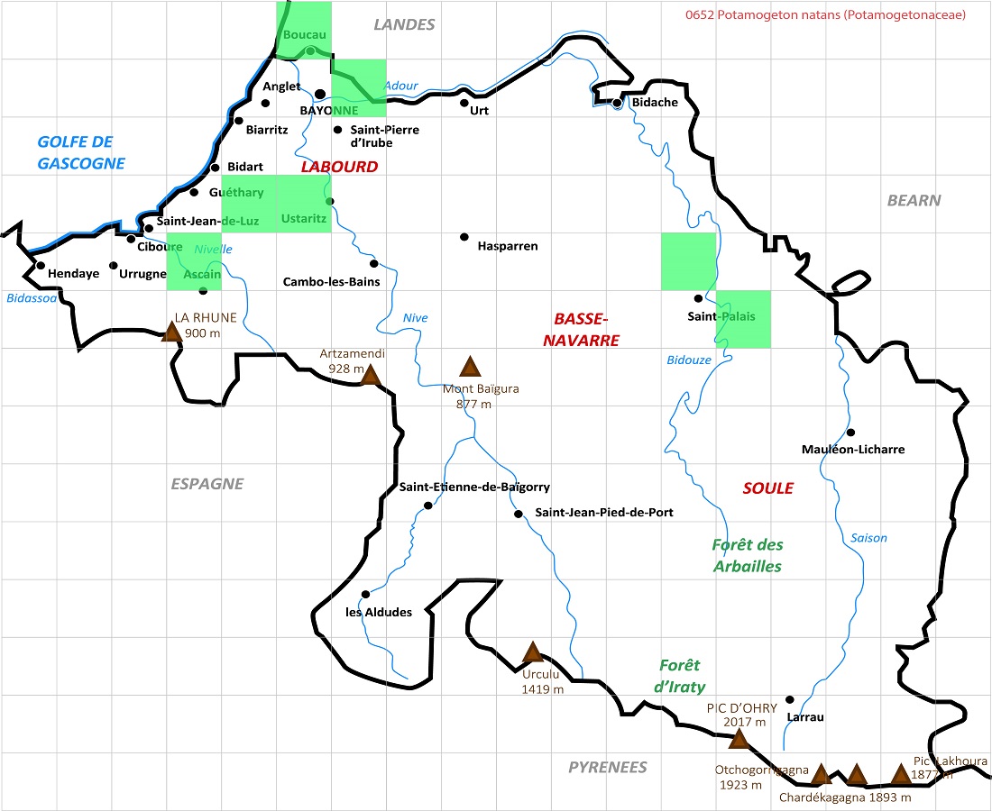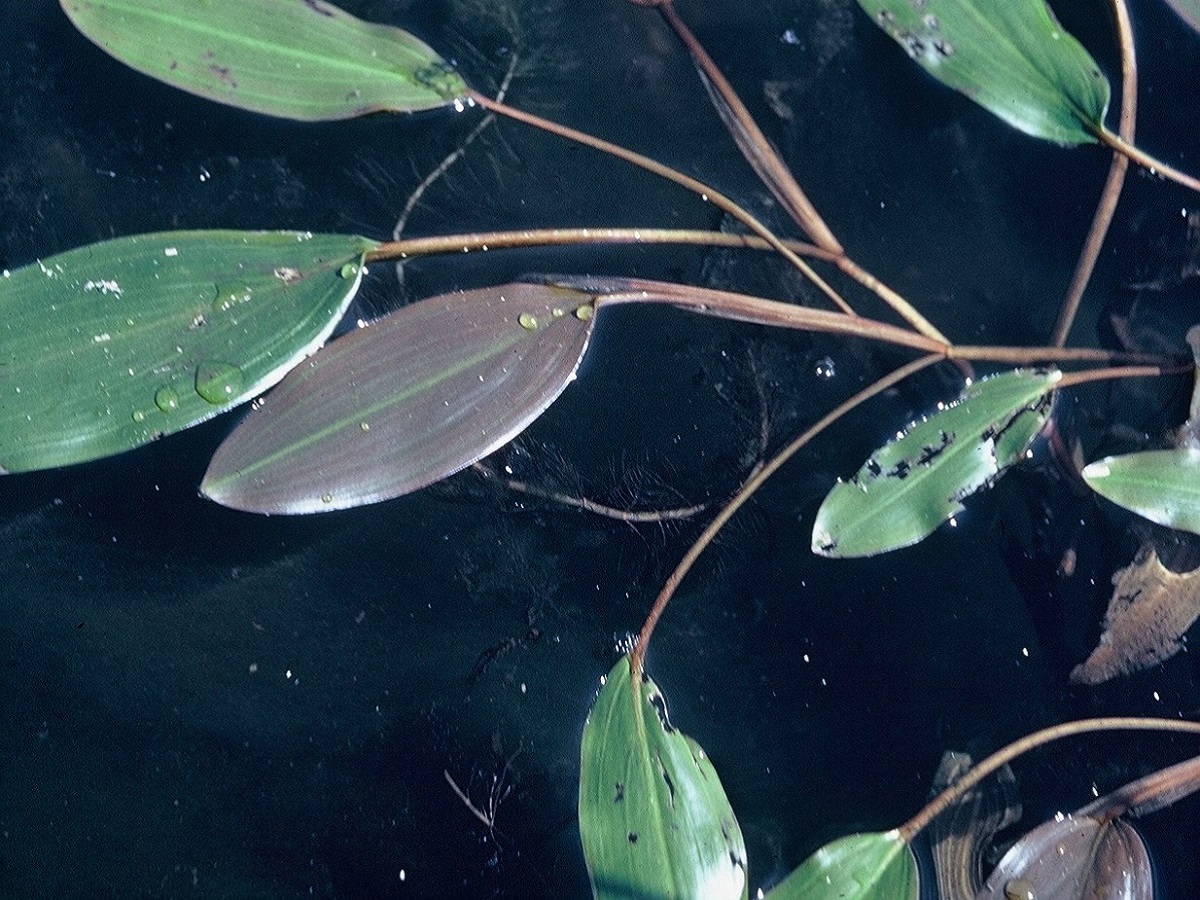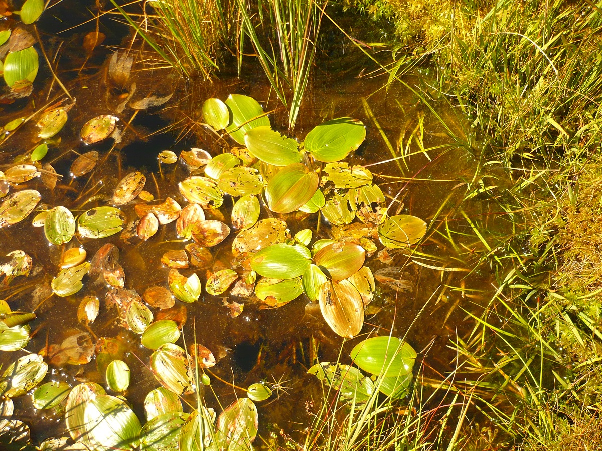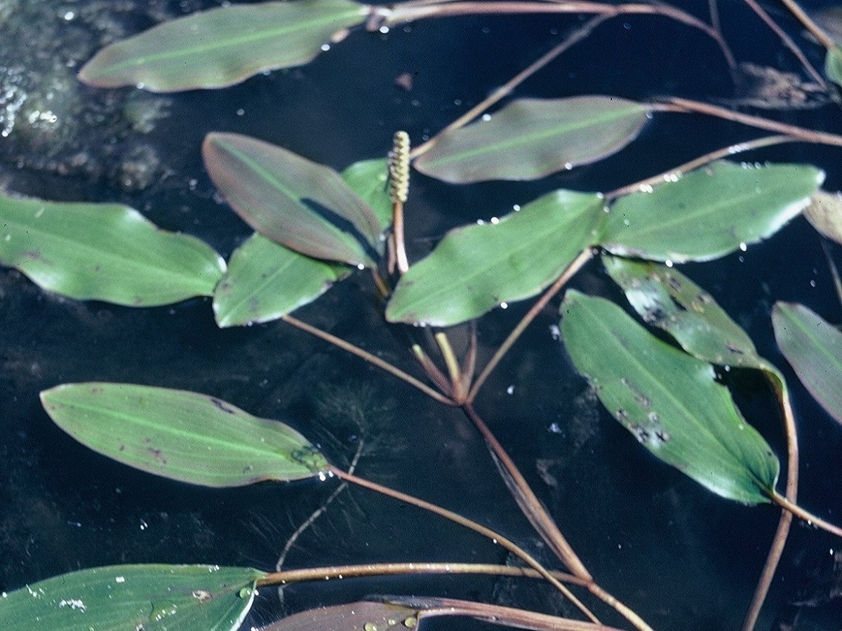 Hydr G – 5-20 dm – Feuilles flottantes de L x l ≃ 10 x 5 cm elliptiques coriaces, à base arrondie ou cordée, pétiolées – Épi cylindrique dense, à pédoncule épais – Fruits L de 3-4 mm carénés