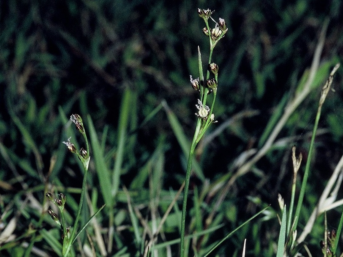 G à rhizome – 1-5 dm – Tige fine peu comprimée, 2-5 feuilles – Inflorescence lâche, glomérules brun foncé, à 1 bractée – Capsule ≃ les tépales obtus, à 2 bandes entièrement foncées