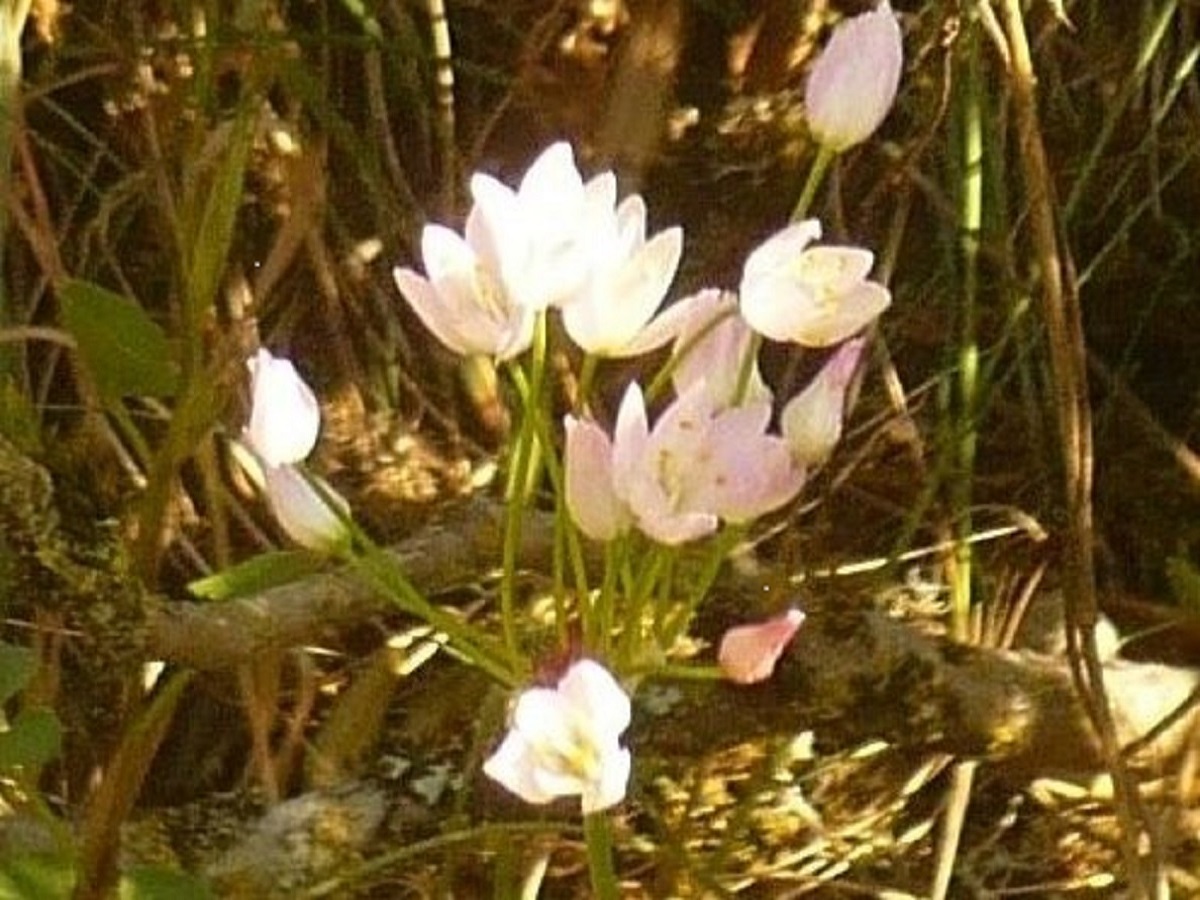 G à bulbe – 2-4 dm – Feuilles glauques dessus, vert luisant dessous – Ombelle de fleurs en coupe de Ø 10-12 mm roses dressées, étamines jaune-orangé incluses, spathe formée de 3-4 lobes
