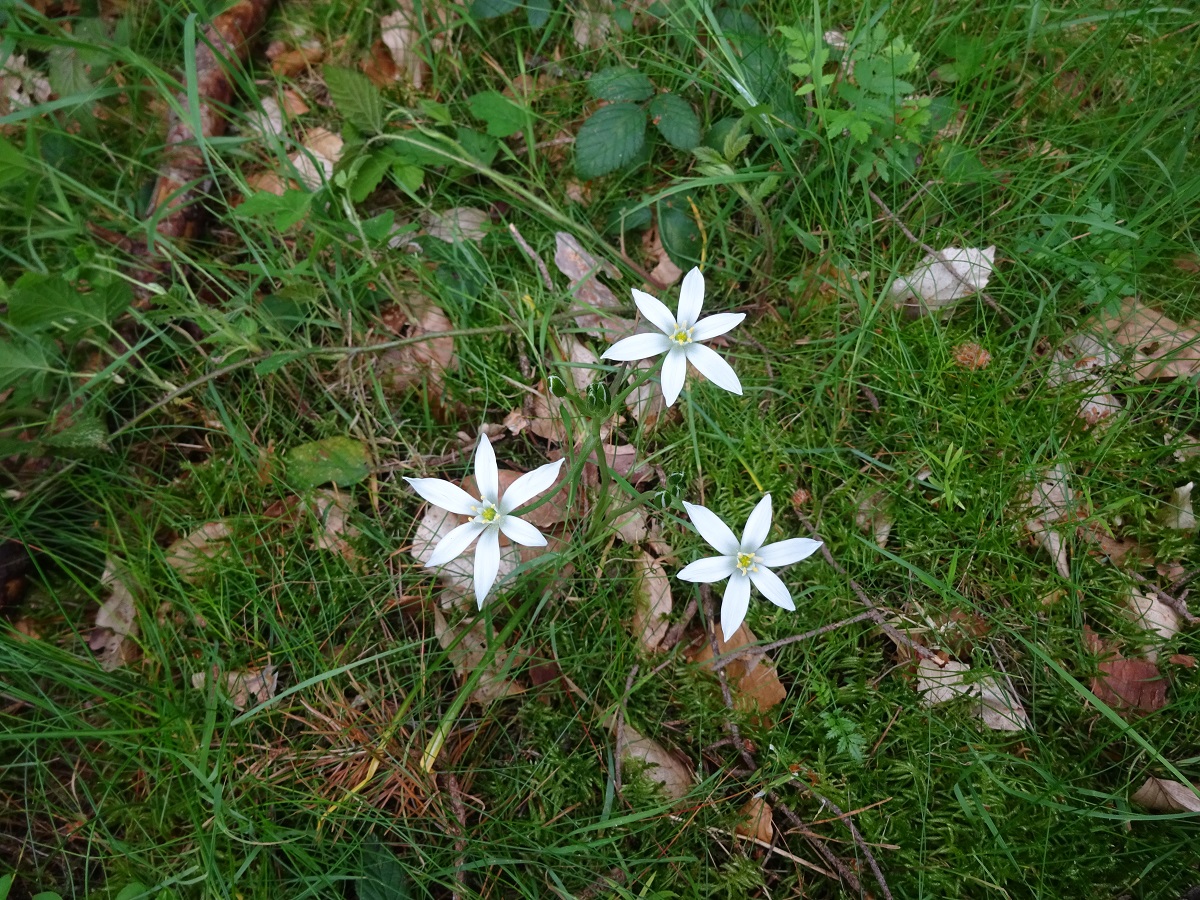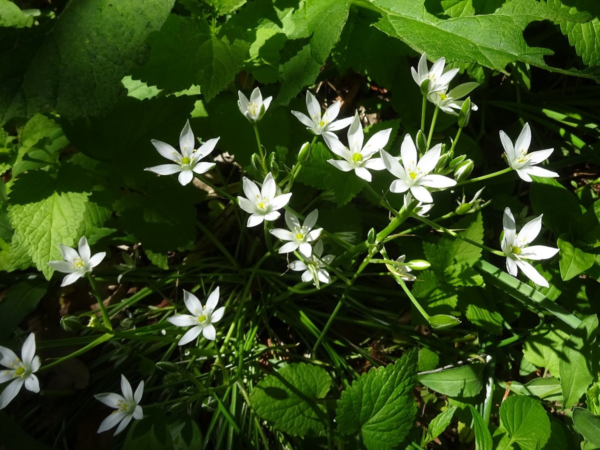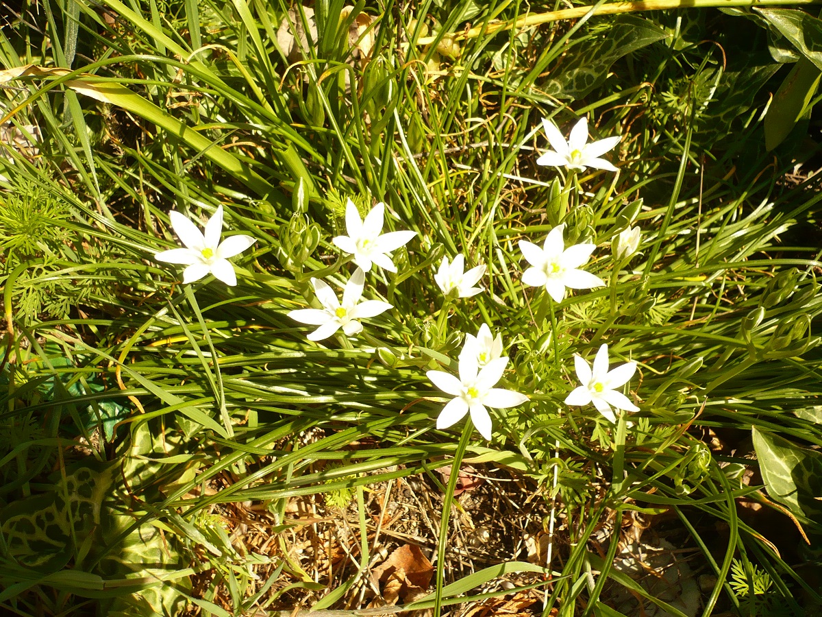G à bulbe – 1,5-3 dm – Feuilles basales étroites à ligne blanche longitudinale – 8-20 Fleurs à peu près en corymbe, blanches à bande verte sur le dos, à pédicelles < longs – Capsule ovoïde