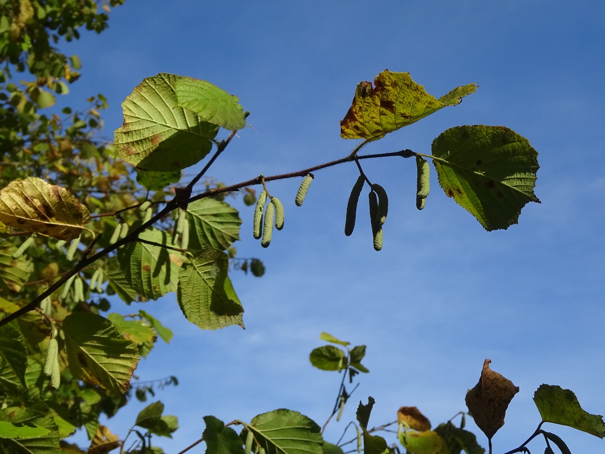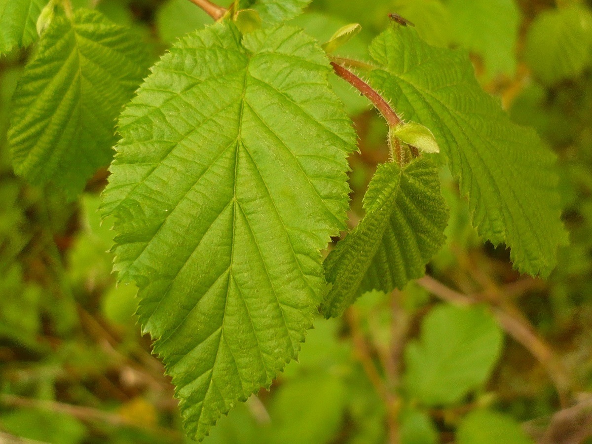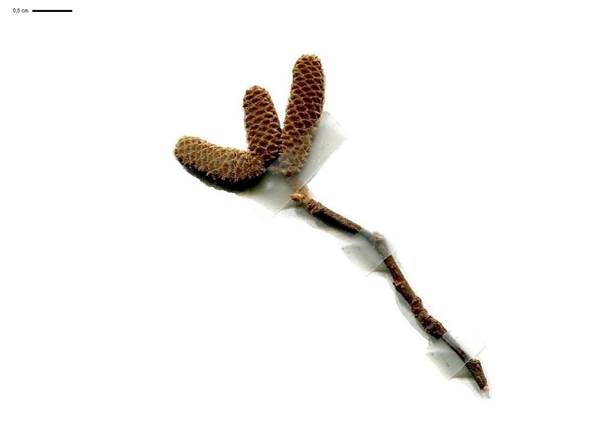 NPh(Ph) – 2-5 m – Feuilles ovales cordées acuminées, doublement dentées – Chatons ♂ cylindriques, fasciculés, pendants – Fruits (noisettes), par 1-4, de L ≃ à celle de l’involucre lacinié
