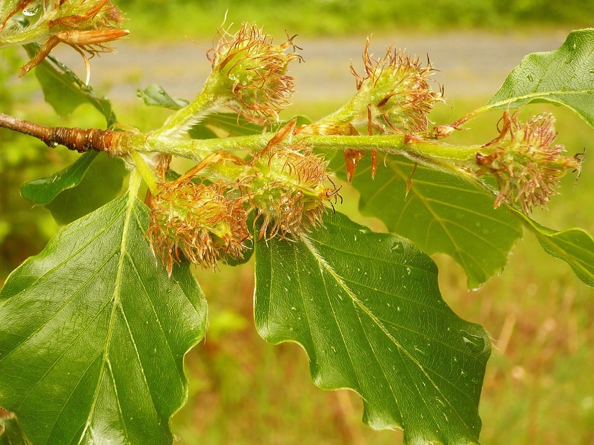 Ph – 10-40 m – Feuilles ovales entières à sinuées, jeunes ± ciliées au bord – Chatons ♂ globuleux pédicellés pendants – Fruits en cupule ovoïde épineuse, graines (faînes) trigones