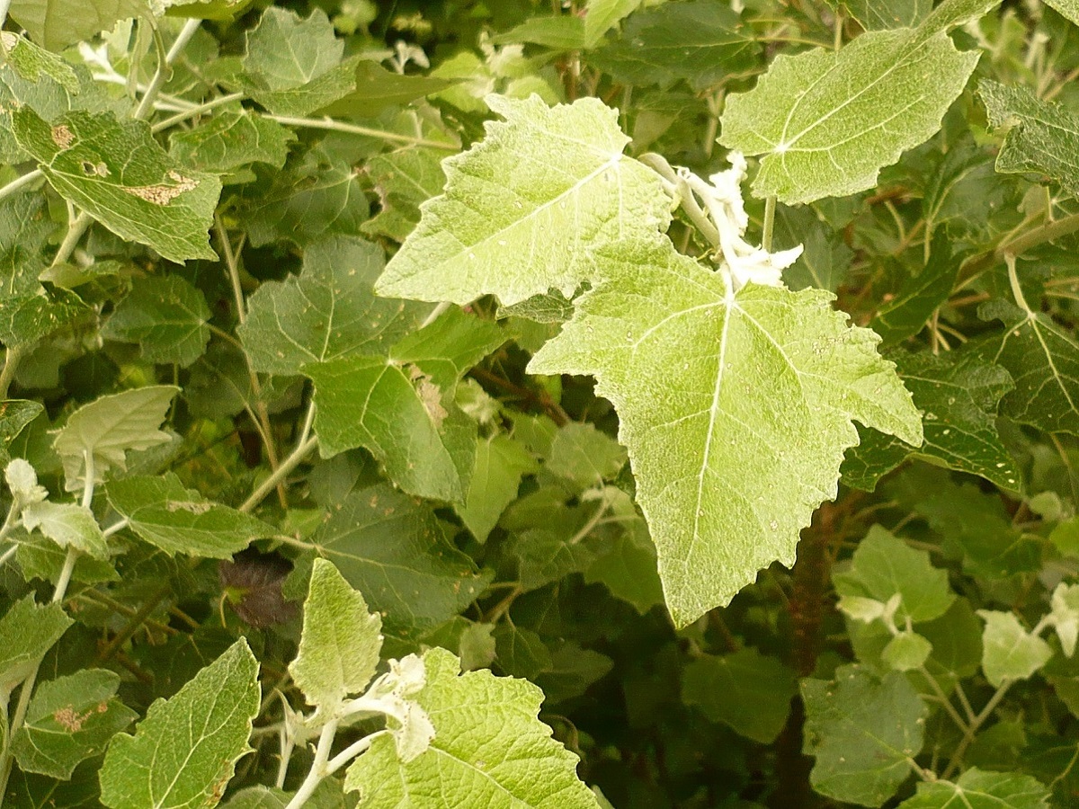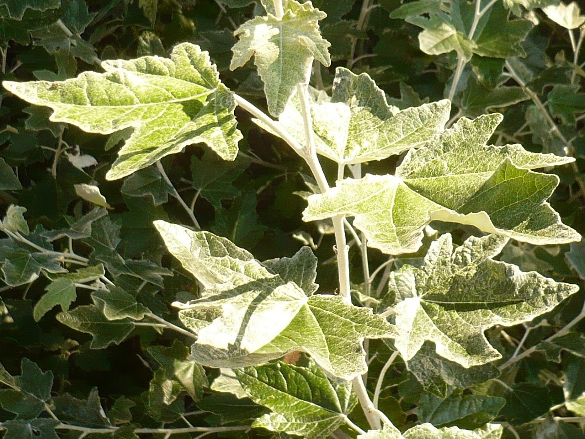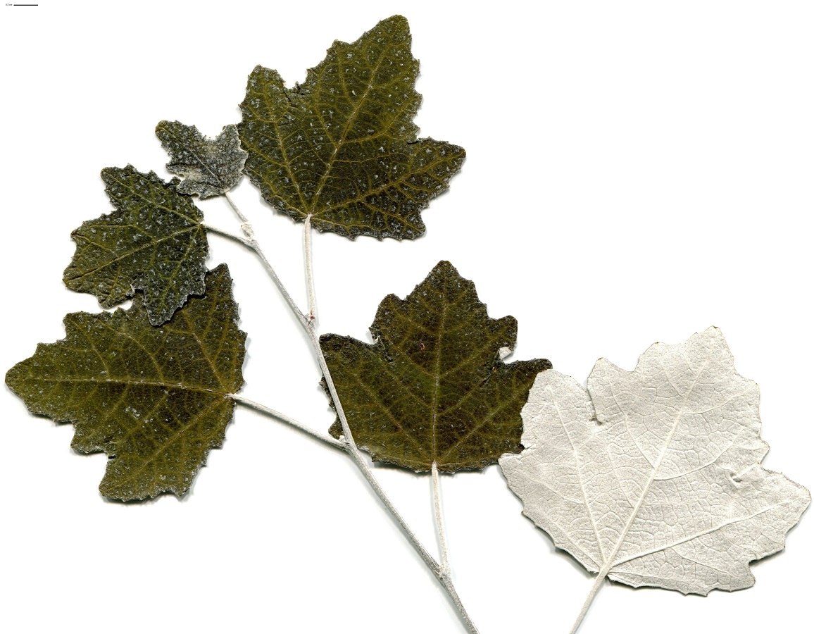 Ph – 10-30 m – Feuilles à base tronquée, à lobes profonds en triangle ou ± orbiculaires dentées, blanches au revers, à pétiole non aplati, blanc tomenteux comme les jeunes rameaux
