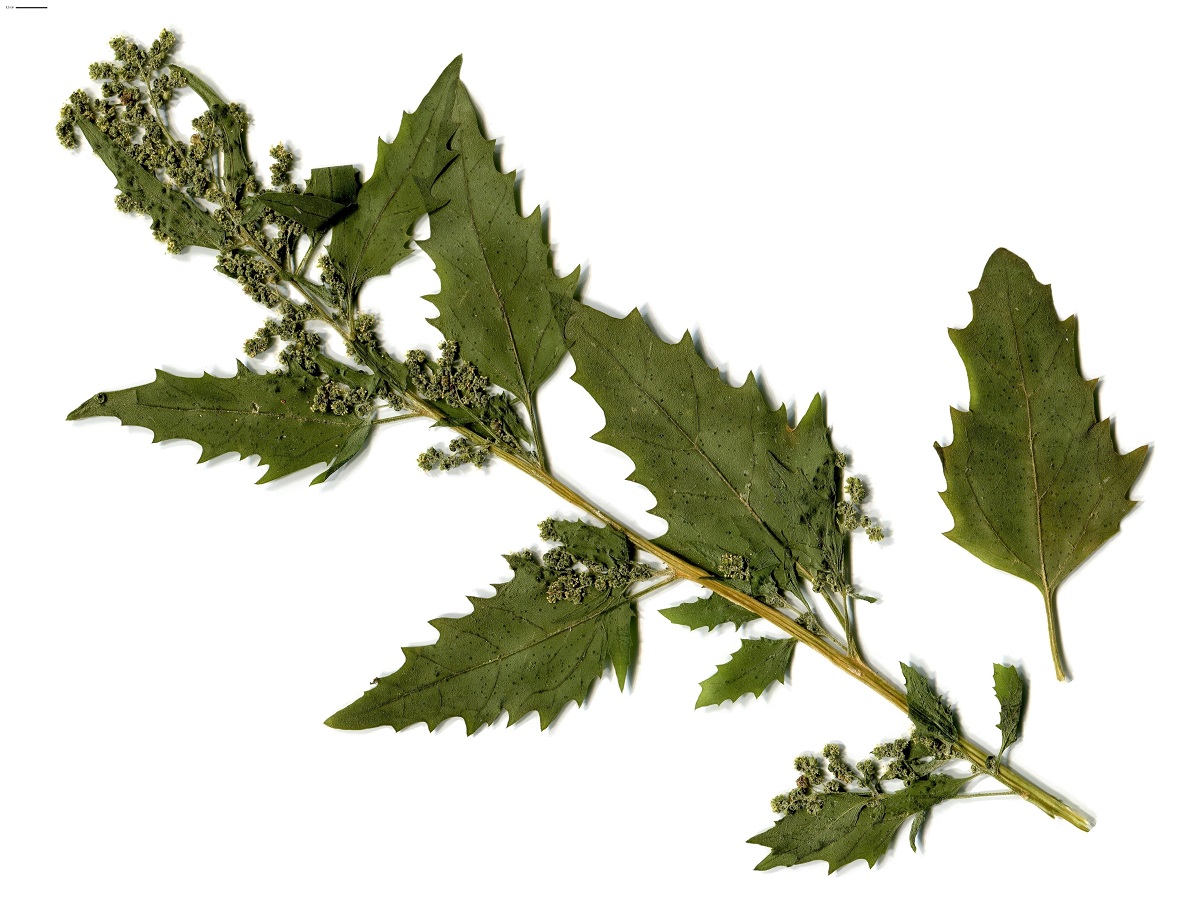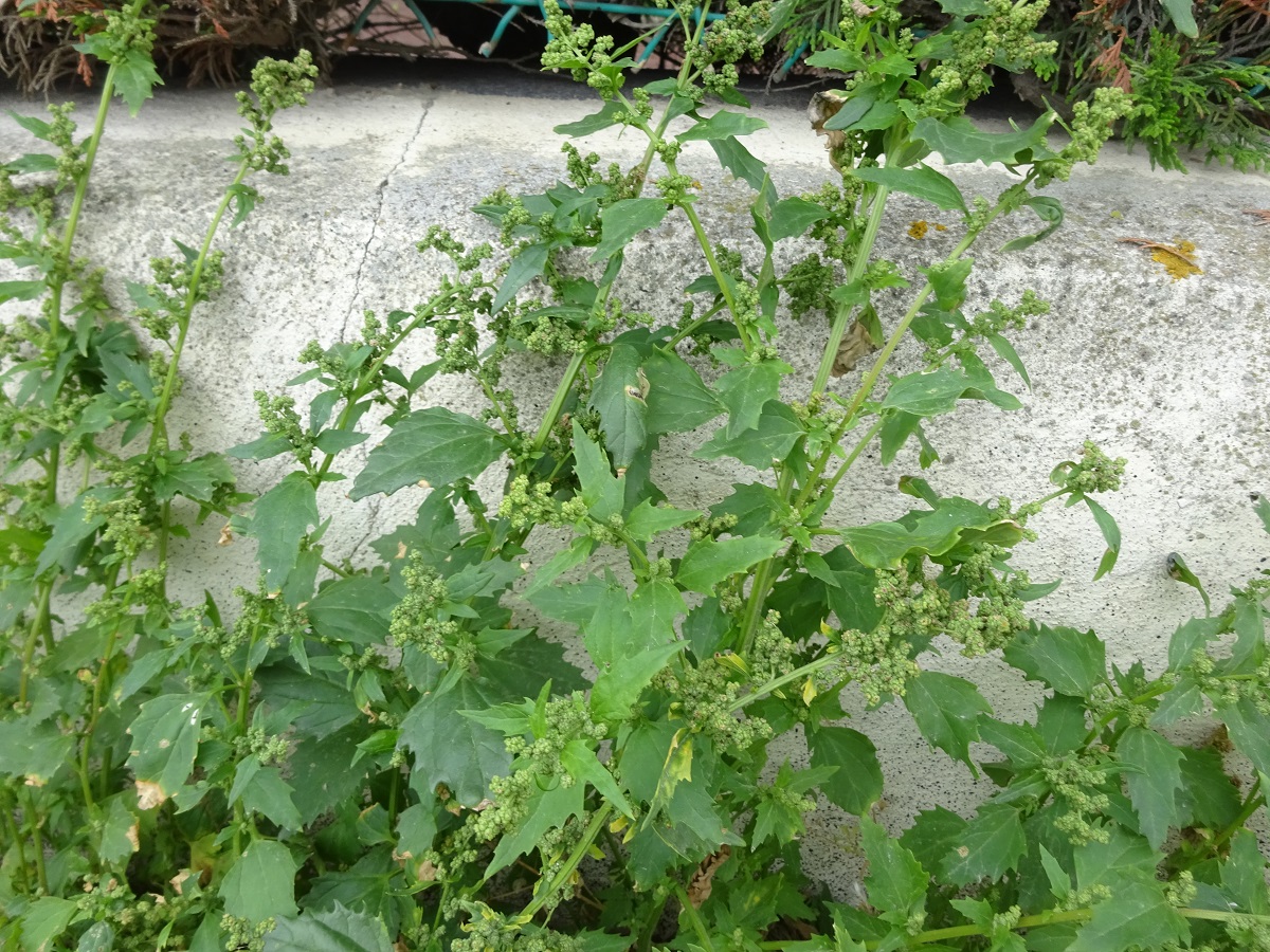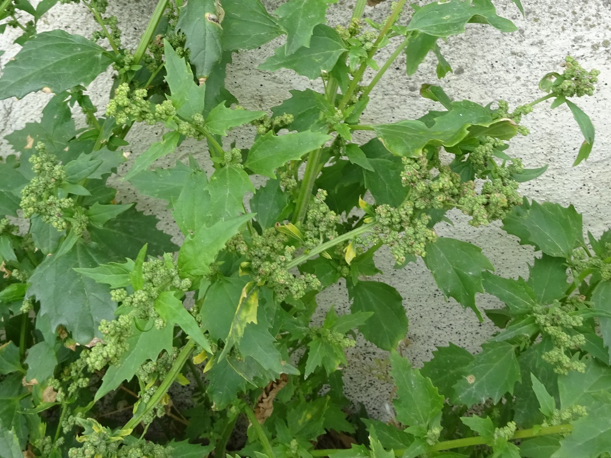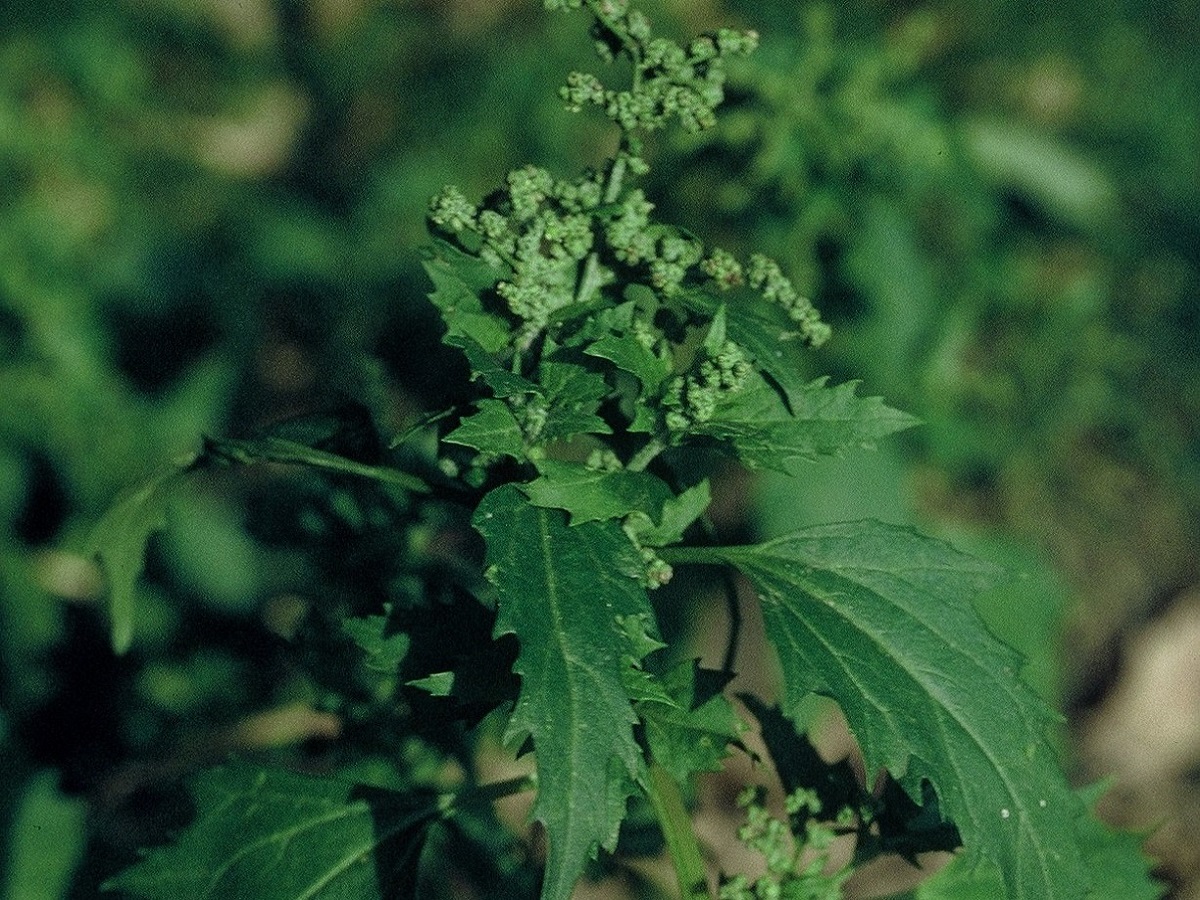 Th – 3-6 dm – Feuilles rhomboïdales, grossièrement dentées vers l’avant, luisantes glabres – Fleurs en glomérules, sépales 5, bossus – Graines noires mates, horizontales