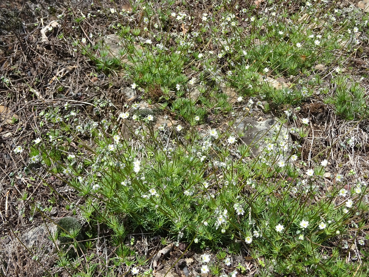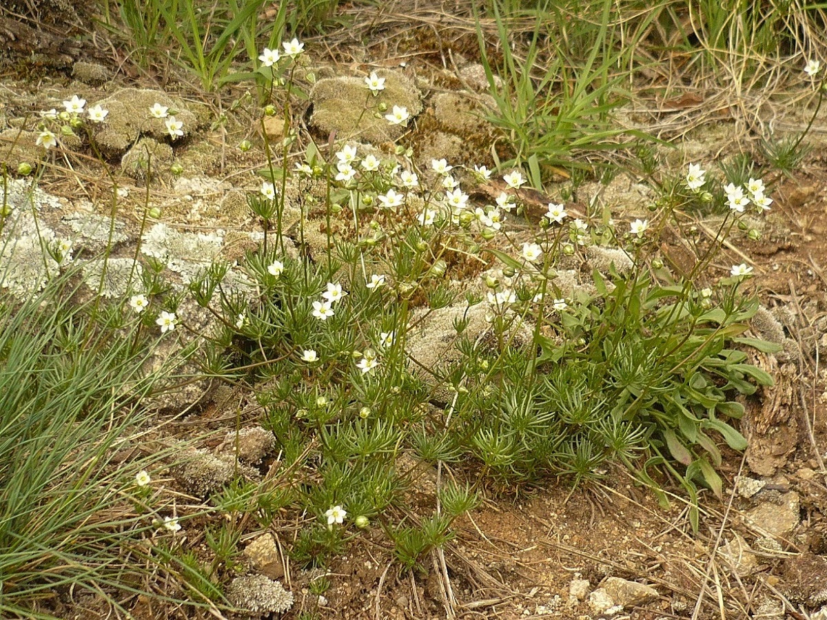 Th – 0,5-2 dm – Tige grêle, feuilles courtes en alêne, non canaliculées à l’envers – Fleurs blanches à 5 pétales ovales, obtus, contigus – Graine à aile brunâtre assez étroite