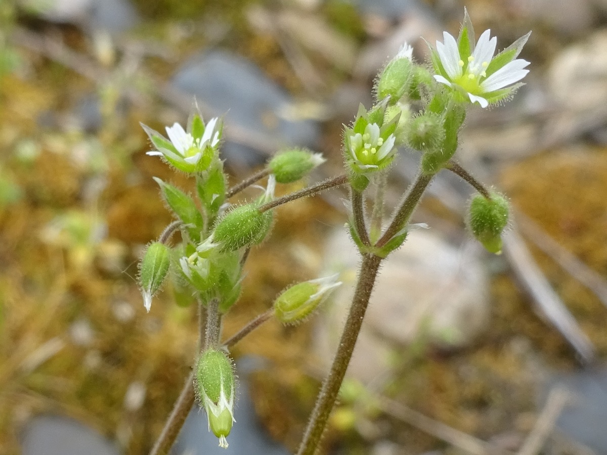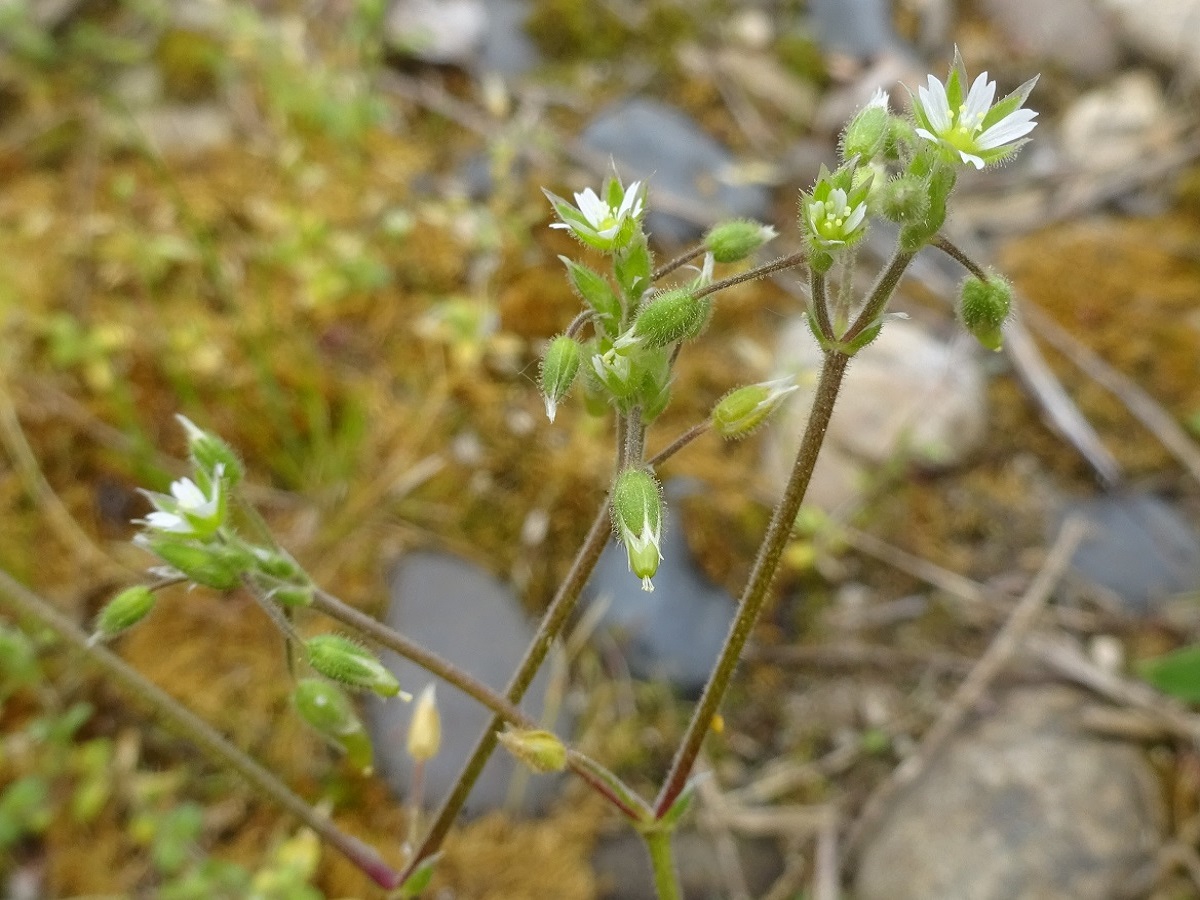 Th – 0,5-2 dm – Feuilles opposées, ovales-oblongues – Petites fleurs à 5 pétales blancs de L < à celle des sépales à large marge scarieuse, comme les bractées, et à pédicelle vite réfléchi