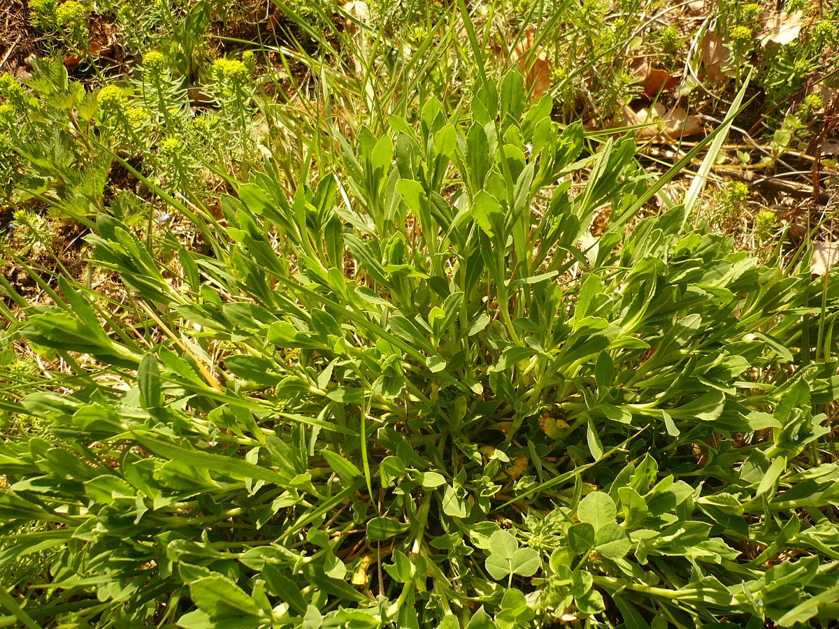 Hc – 3-6 dm – Feuilles étroites opposées lancéolées ± charnues – 5-10 Fleurs à 5 petits pétales blancs bifides, calice enflé (l = 6-12 mm), bractéoles scarieuses – Capsule à dents dressées