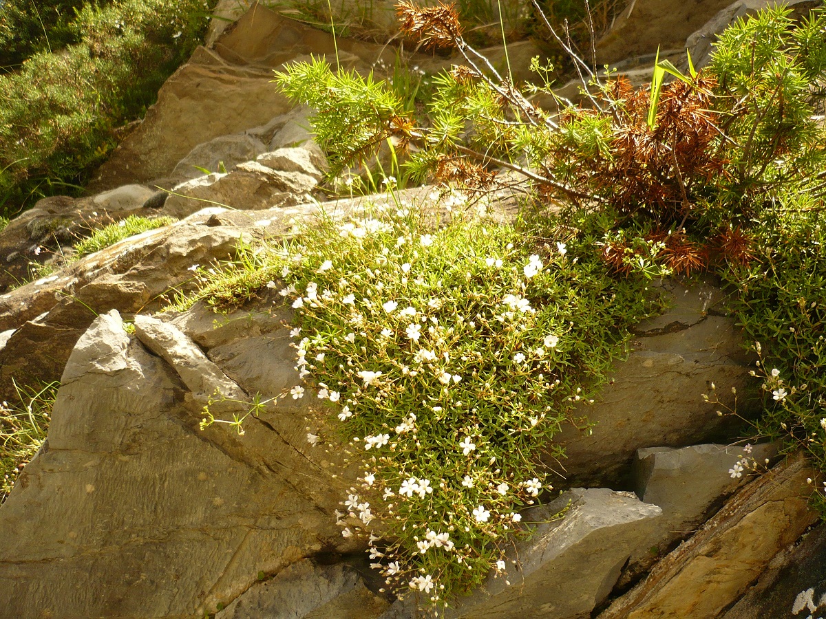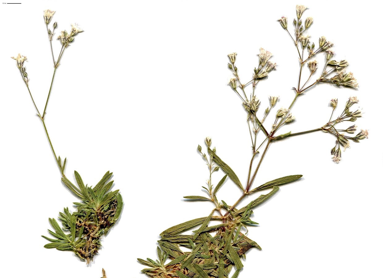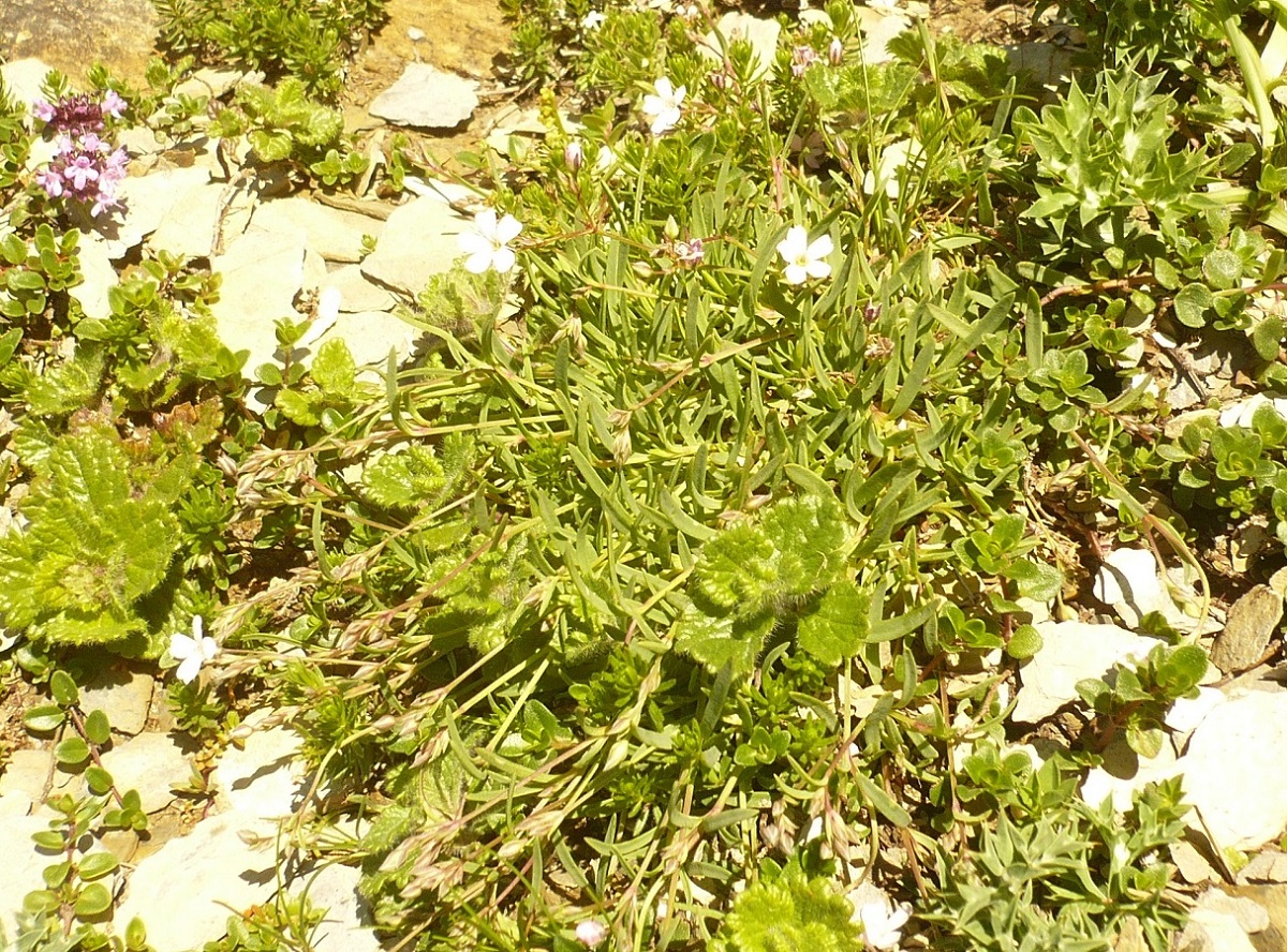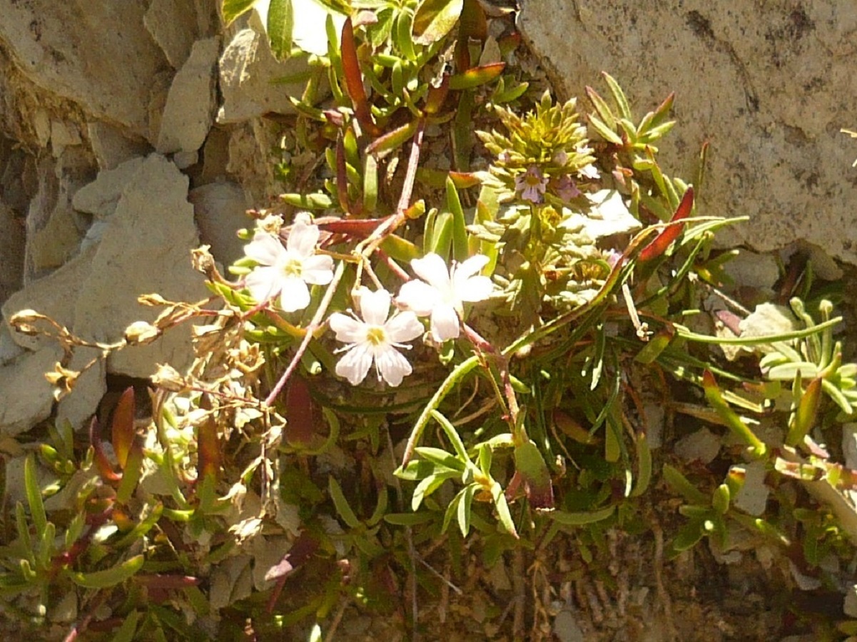 Th – 2-4 dm – Feuilles glauques opposées étroites, planes – Fleurs à peu près en corymbe lâche, pédicellées, à 5 pétales blancs à rosés ± échancrés, calice à dents apiculées